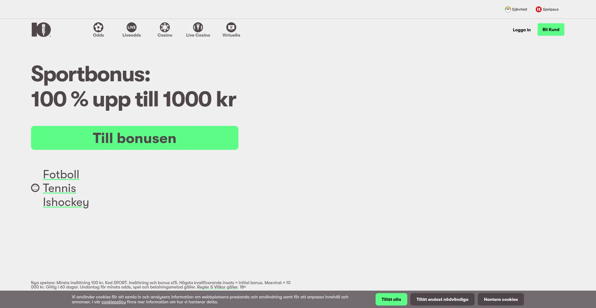 Gå med i 10bet Sverige – din licensierade bettingsajt och onlinecasino. Njut av en välkomstbonus på 100 % upp till 1000 kr när du spelar på sport och casino.