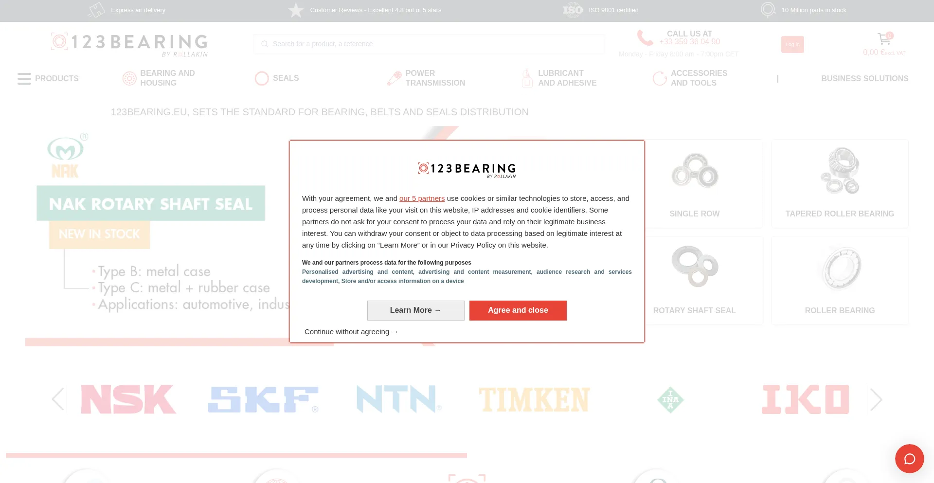 More than 10 million parts in stock at 123Bearing. Bearings, belts, seals and rod ends at the best price and available in stock. Fast delivery!