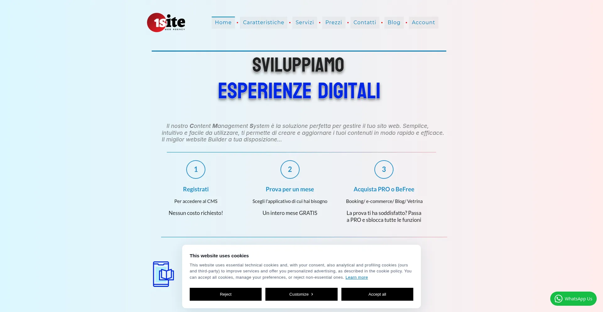 El sitio web implementa mecanismos de consentimiento de cookies en cumplimiento con regulaciones de privacidad como GDPR o CCPA. Esto demuestra que 1site.it adhiere a estándares de protección de datos y proporciona a los usuarios control sobre prácticas de recolección de datos personales.