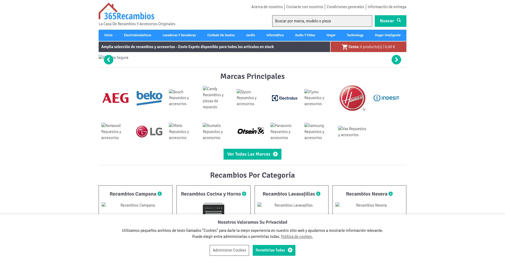 El sitio web implementa mecanismos de consentimiento de cookies en cumplimiento con regulaciones de privacidad como GDPR o CCPA. Esto demuestra que 365recambios.es adhiere a estándares de protección de datos y proporciona a los usuarios control sobre prácticas de recolección de datos personales.