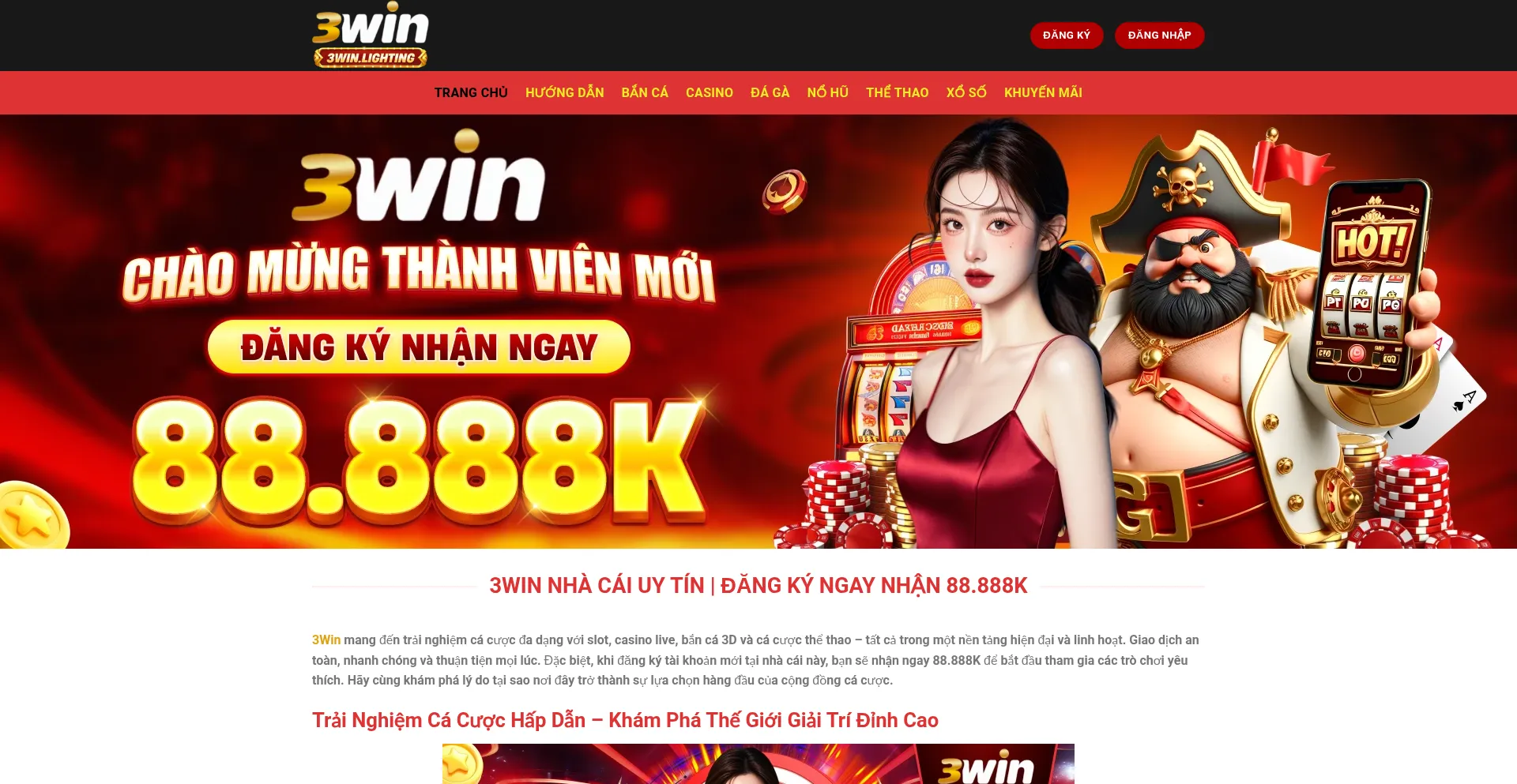 Đăng ký tài khoản mới tại 3win, nhận ngay 88.888K. Hãy cùng khám phá lý do tại sao nơi đây trở thành sự lựa chọn hàng đầu của cộng đồng...