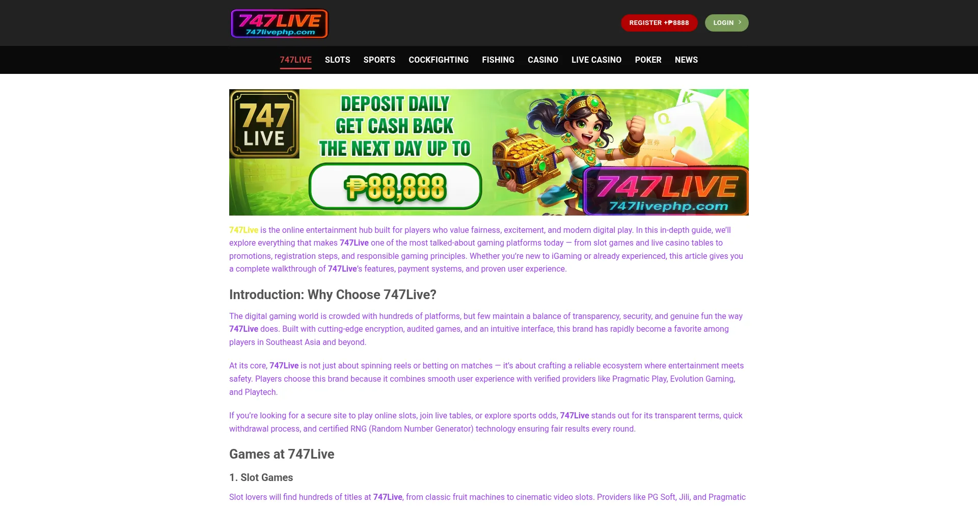 Discover 747Live — your trusted online casino and sports betting destination. Learn games, bonuses, withdrawals, and play responsibly.