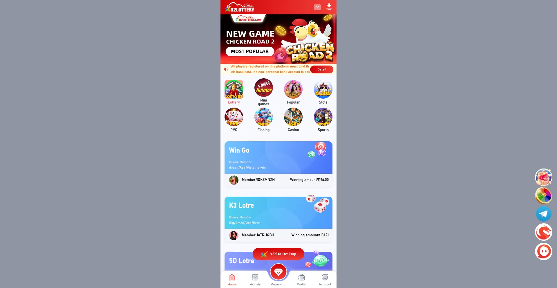 82Lottery - is an online lottery platform in India that allows users in exciting lottery games and have a chance to big prizes and be lucky winners at 82Lottery!