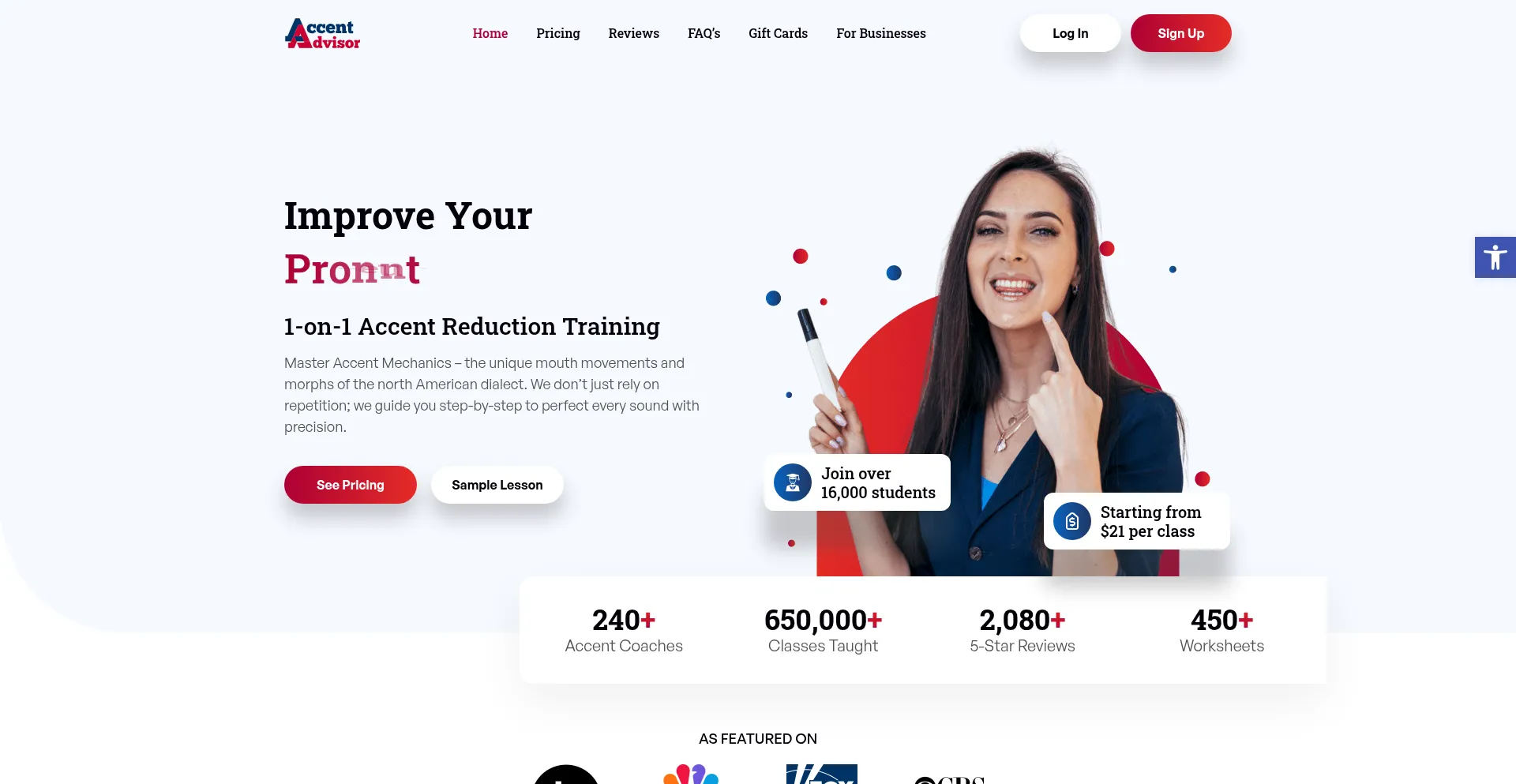 The leading American Accent Training program in America. Accent Advisor provides accent reduction classes and teaches you to speak English like an American.