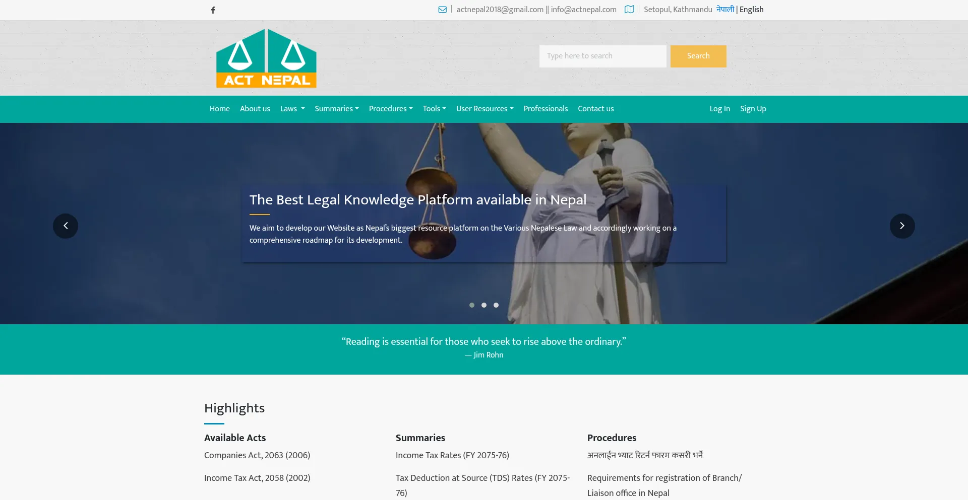 Act Nepal provides in depth comprehensive content with many tools, summaries, a forum for acts, rules, regulations in Nepal.