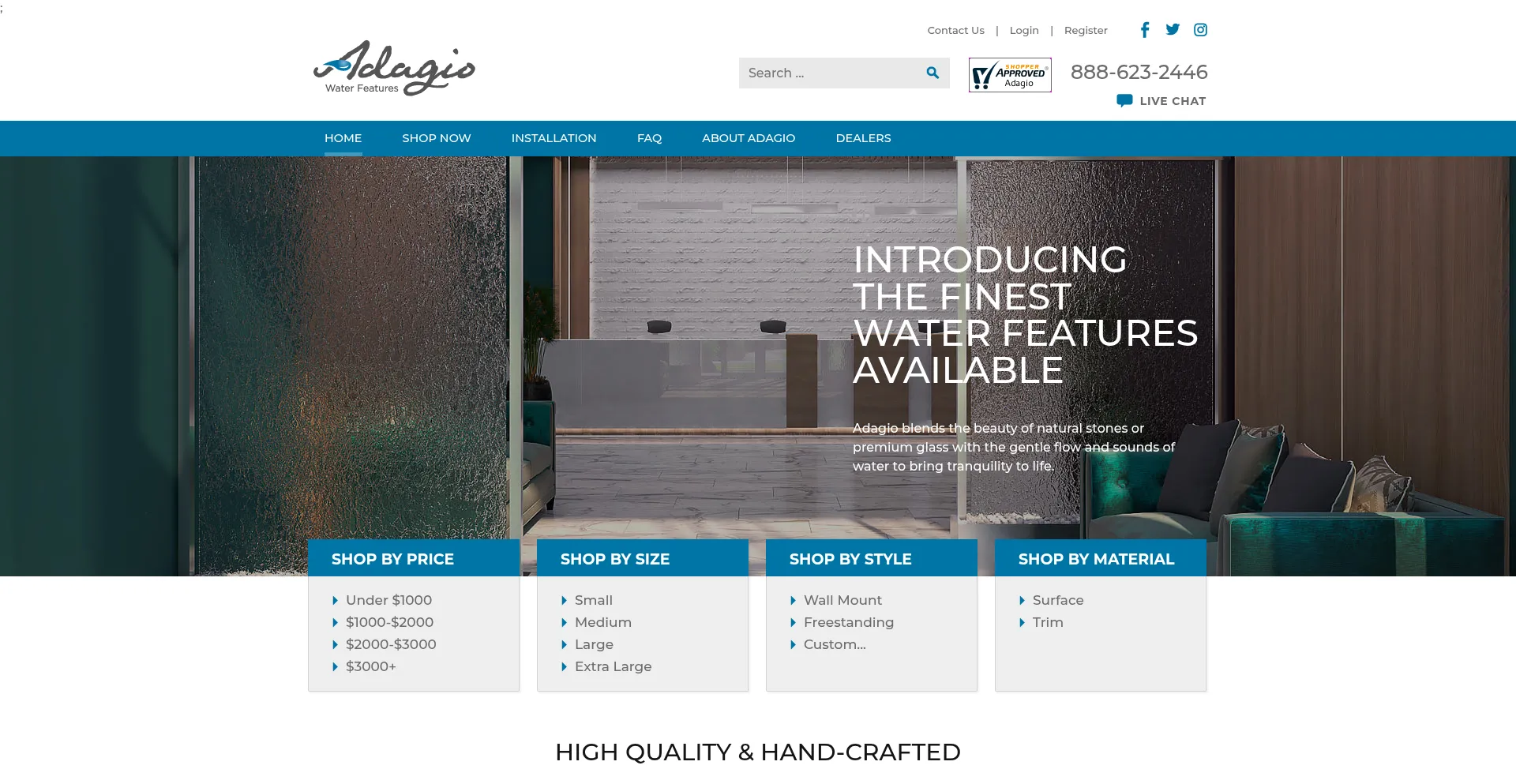 Adagiowaterfeatures.com Reseña del sitio web