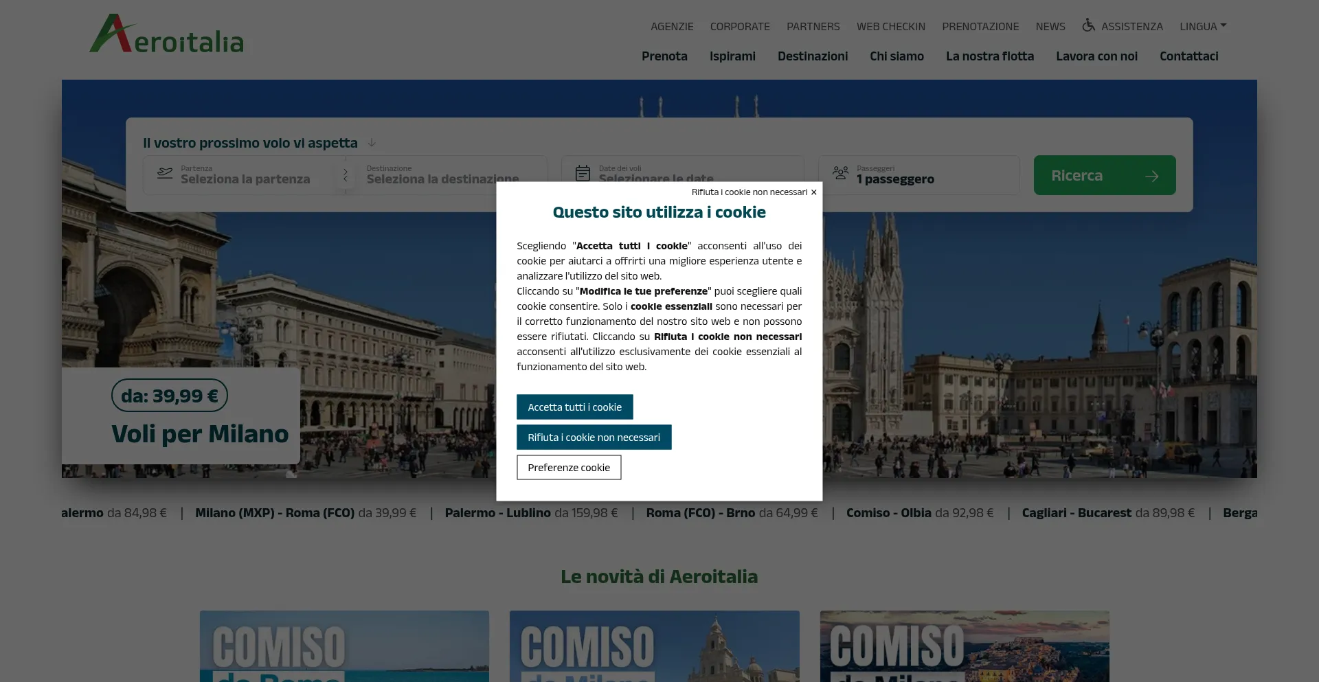Aeroitalia offre voli nazionali e internazionali a prezzi competitivi. Viaggia comodo con una flotta moderna e scopri un servizio di qualità. Prenota ora!