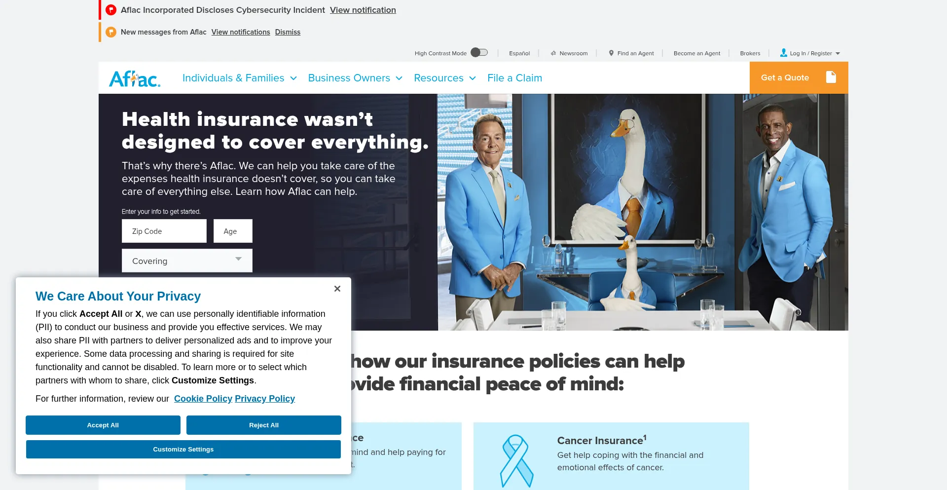 Aflac.com Reseña del sitio web