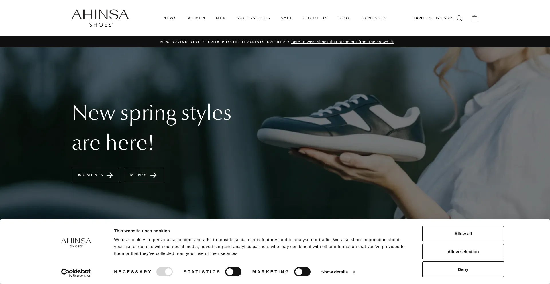El sitio web implementa mecanismos de consentimiento de cookies en cumplimiento con regulaciones de privacidad como GDPR o CCPA. Esto demuestra que ahinsashoes.com adhiere a estándares de protección de datos y proporciona a los usuarios control sobre prácticas de recolección de datos personales.