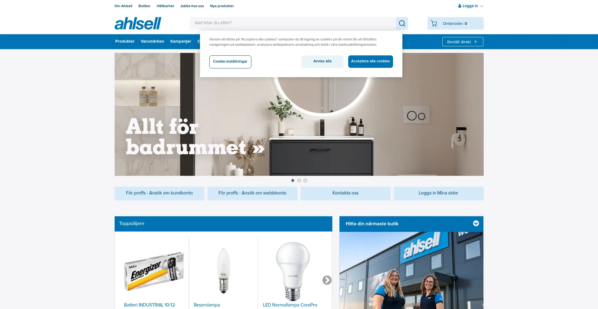 Ahlsell är den ledande tekniska distributören i Norden inom installationsprodukter, verktyg och maskiner. Handla online i Ahlsells webbutik.