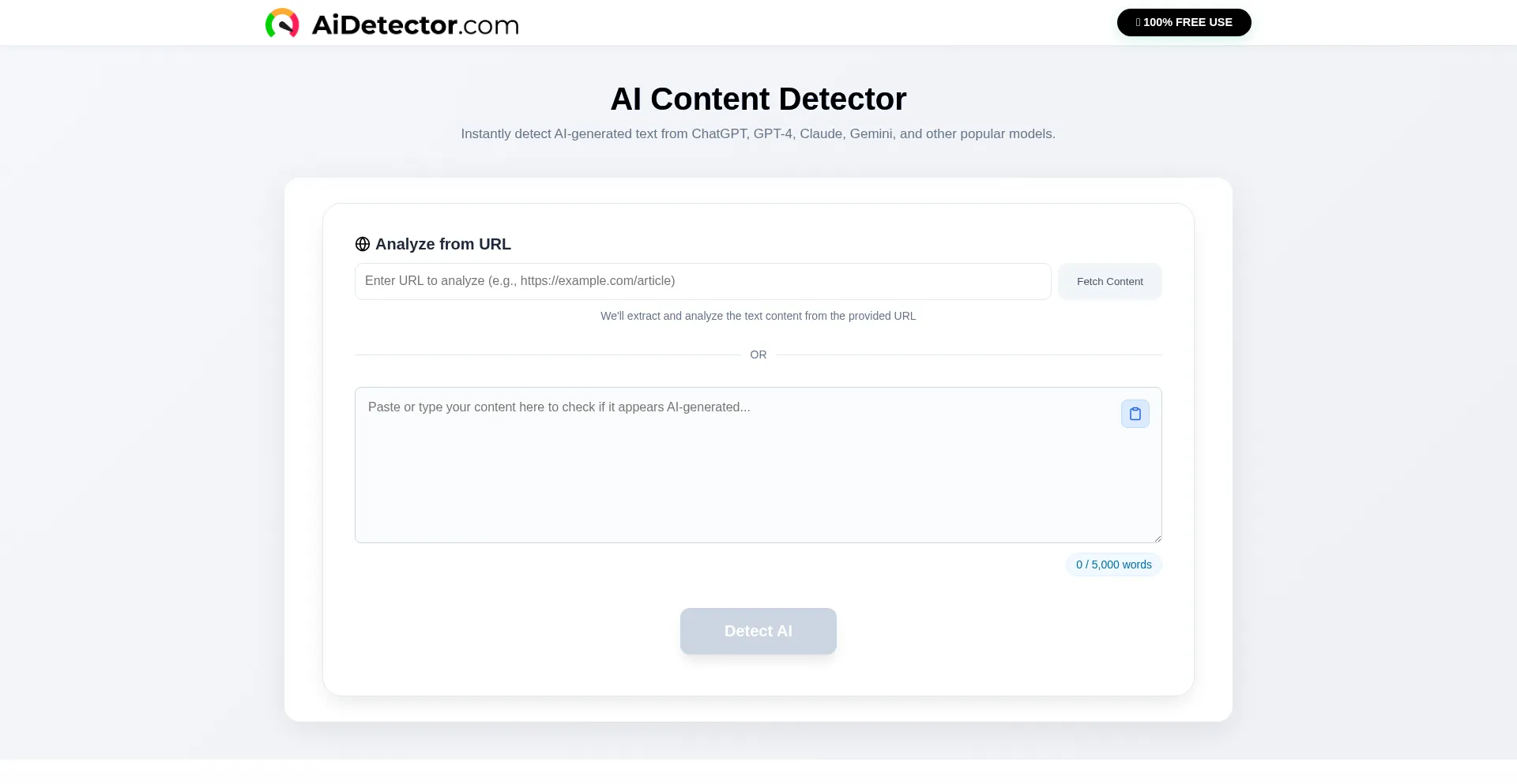 AI Detector - 100% FREE AI Checker (up to 5k words)