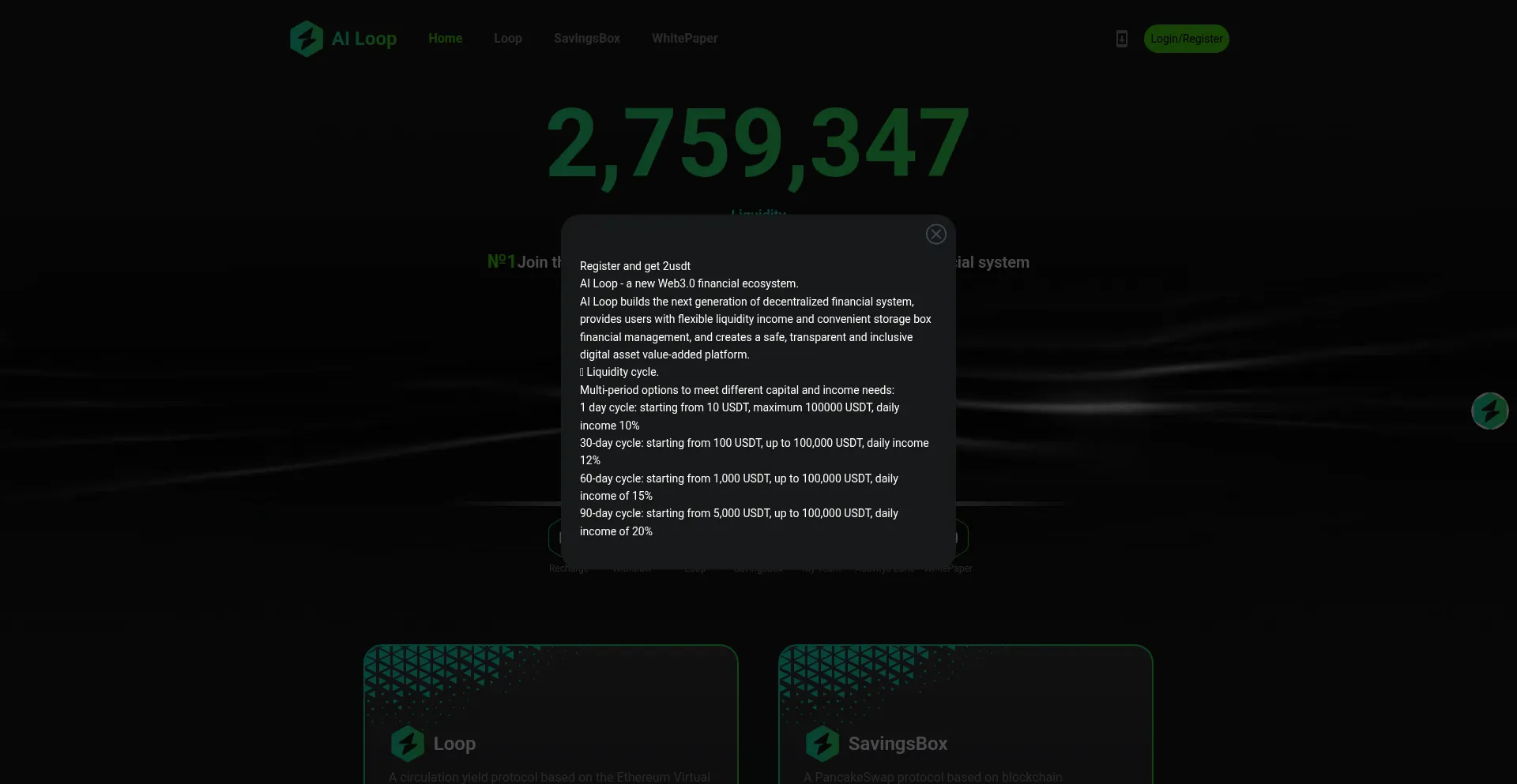 Ailoop.cc opera una plataforma financiera fraudulenta promoviendo oportunidades de inversión engañosas con promesas de retornos irreales. El análisis de seguridad indica que la plataforma emplea tácticas consistentes con esquemas Ponzi y fraude de tarifa anticipada diseñados para extraer fondos de usuarios e información personal.