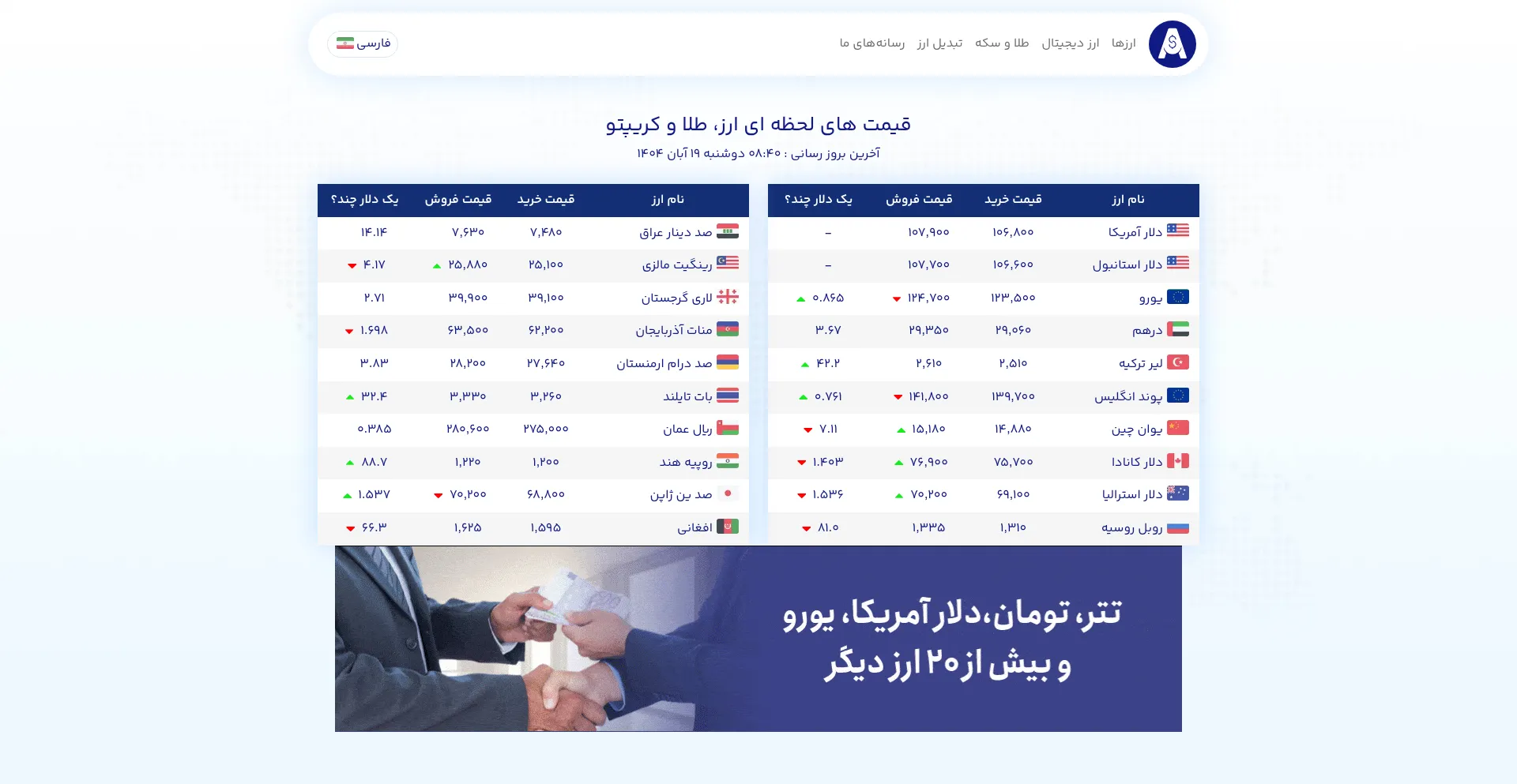 مشاهده لحظه‌ای قیمت ارز، طلا، سکه و رمزارزها از منابع معتبر در الان چند. مرجع دقیق و بی‌طرف قیمت�...