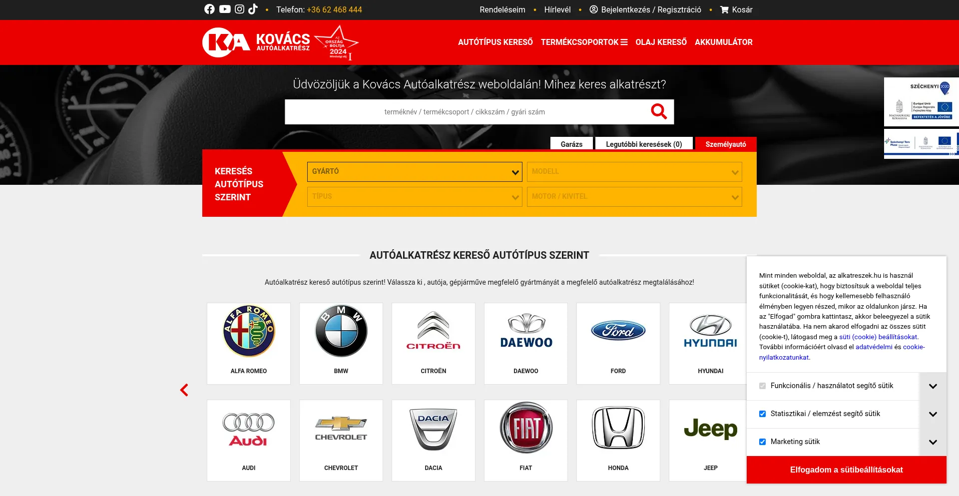 static.cloudflareinsights.com static.hotjar.com www.youtube.com www.googletagmanager.com alkatreszek.hu www.tiktok.com www.facebook.com simplepartner.hu www.google.com backend.kovacsauto.eu +7 más