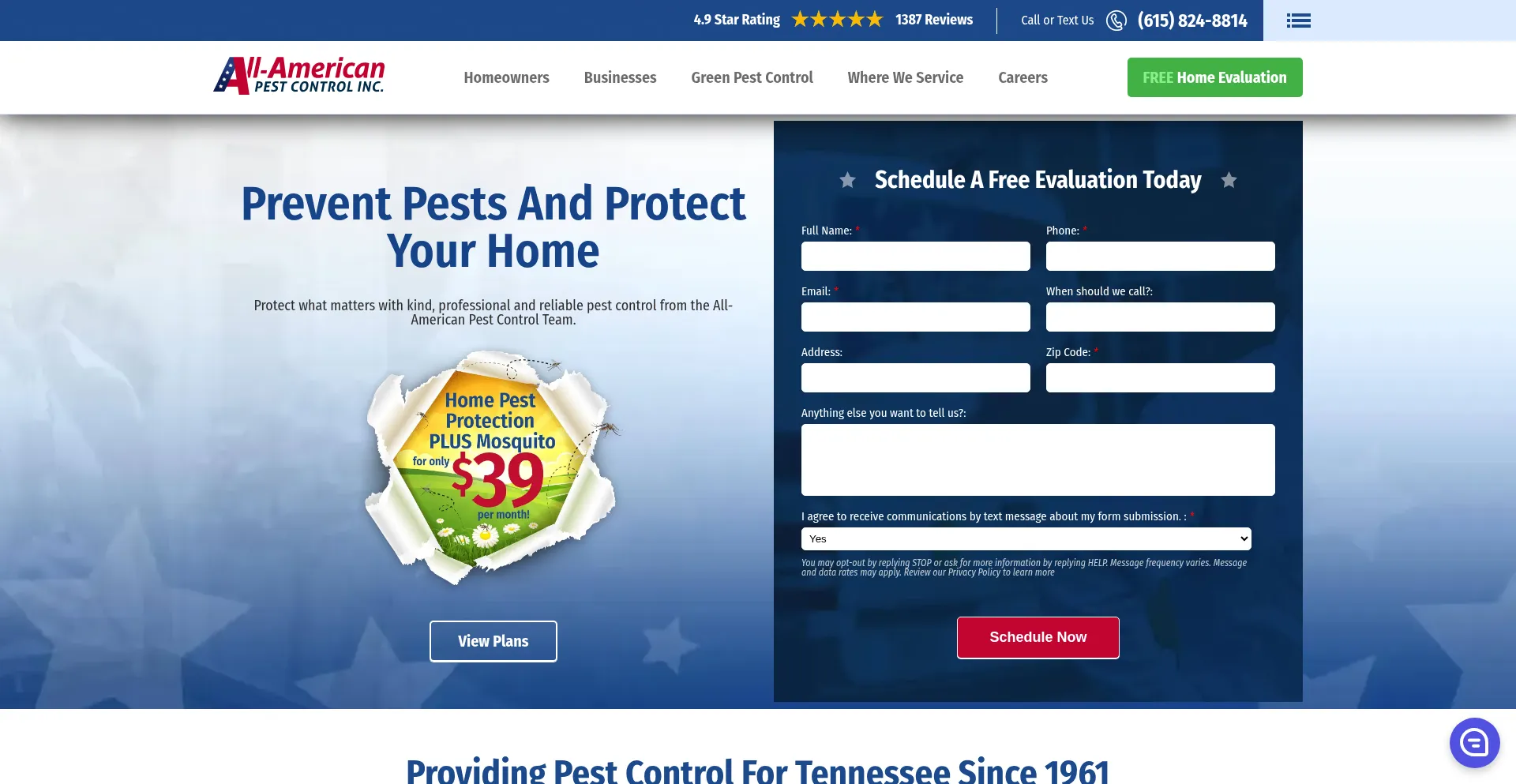 All-American Pest Control offers, easy to schedule pest control that eliminate Nashville's most persistent pests including termites! A+ BBB Rating.