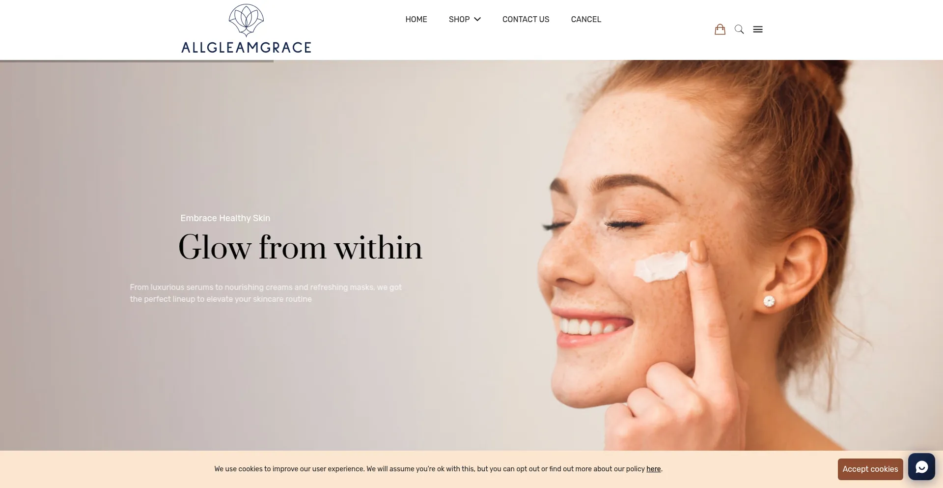 El sitio web implementa mecanismos de consentimiento de cookies en cumplimiento con regulaciones de privacidad como GDPR o CCPA. Esto demuestra que allgleamgrace.com adhiere a estándares de protección de datos y proporciona a los usuarios control sobre prácticas de recolección de datos personales.