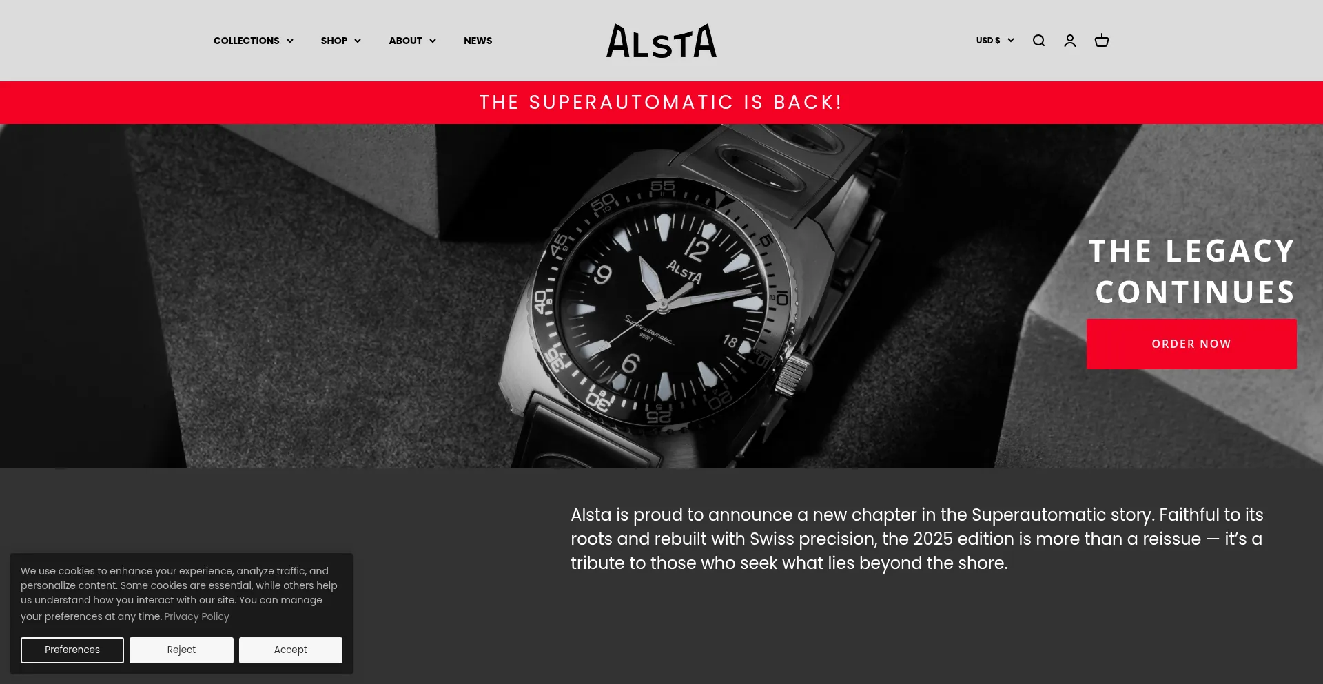 Renowned for the Jaws watch, Alsta revives romance, excitement and escapism with timeless designs and robust craftsmanship. Discover the Alsta collection on alstawatch.com