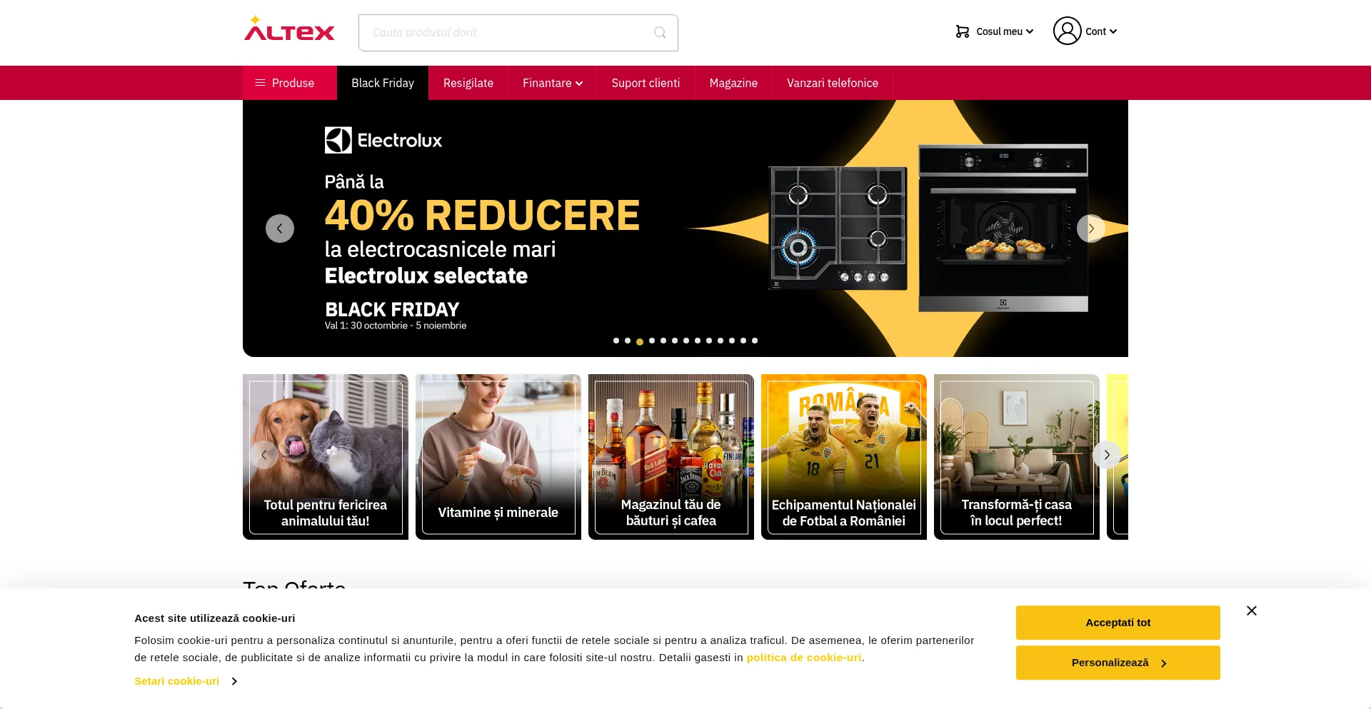 Pe altex.ro gasesti cel mai mic pret din Romania la produse electronice si electrocasnice mici si mari, telefoane si laptopuri, echipamente TV si audio-video, gadget-uri si arti...