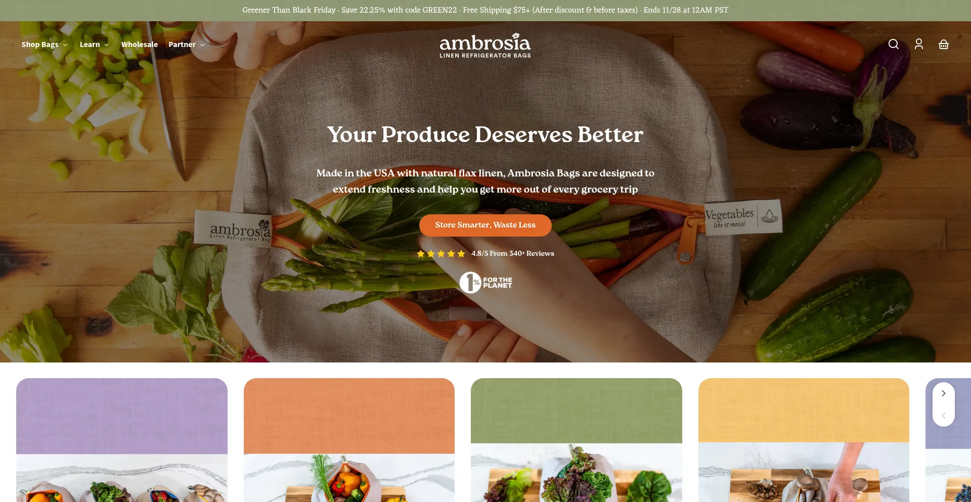 Ambrosia Bag is air permeable and thermo-regulating. Ambrosia Bags add life and saves more than just your precious produce.