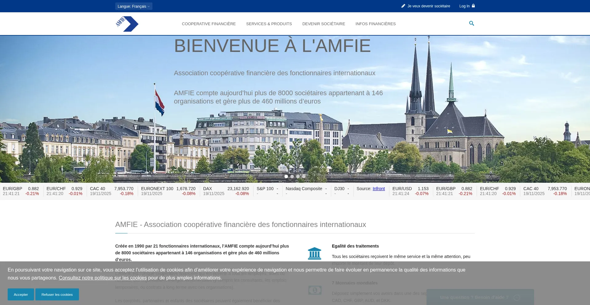 Au service des fonctionnaires internationaux depuis 25 ans, l’AMFIE propose une gamme de services financiers adaptés aux challenges que vous rencontrez (mobilité, épargne e...