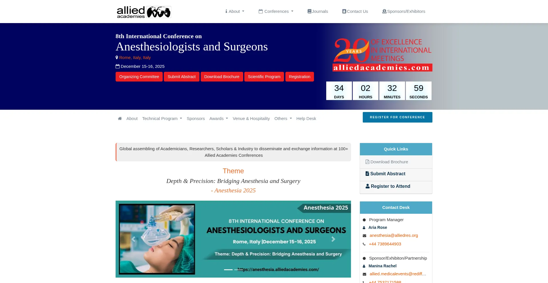 Join us at the 8th International Conference on Anesthesiologists and Surgeons in Rome, Italy during December 15-16, 2025 and expand your networking with the Global experts.