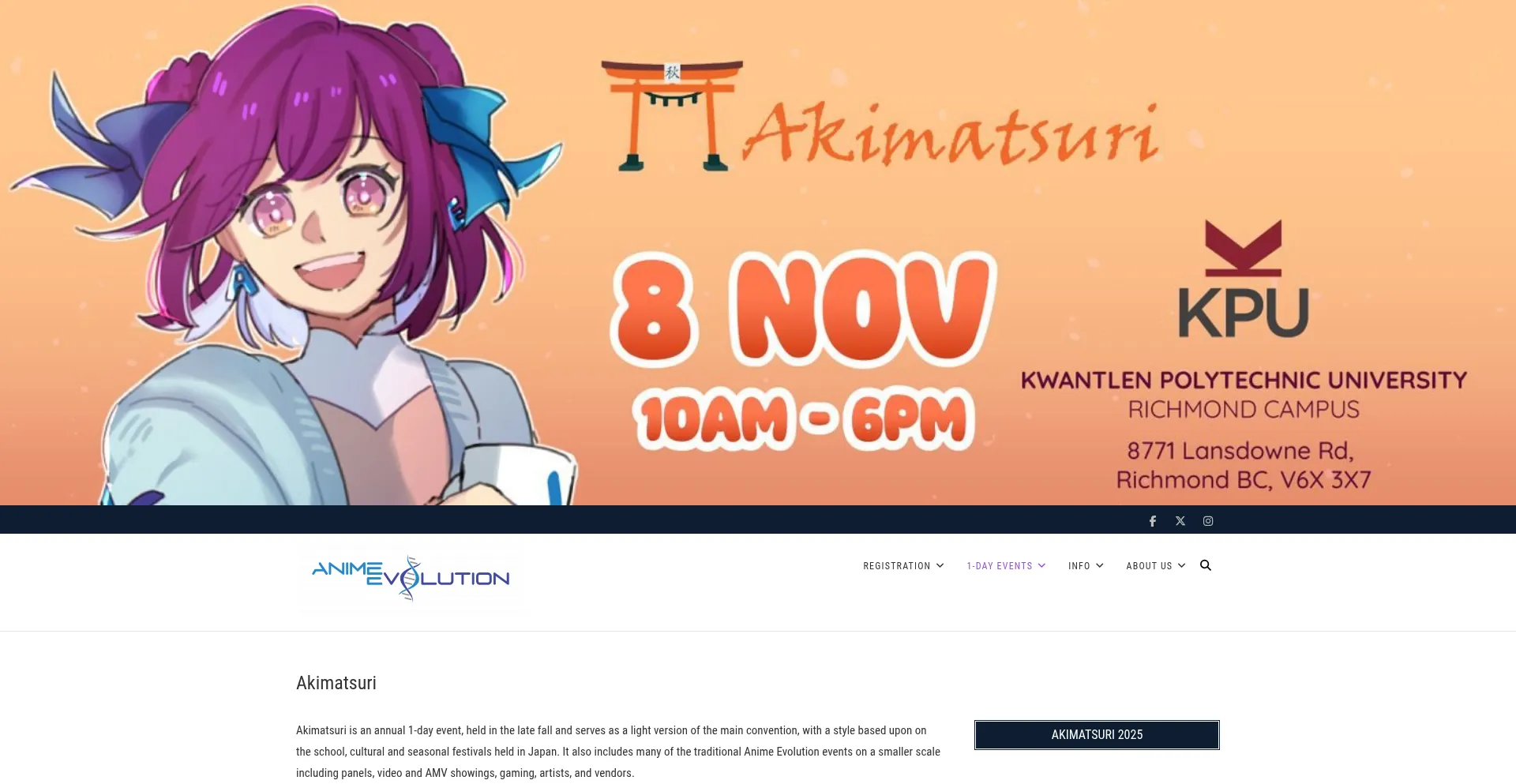 Akimatsuri is an annual 1-day event, held in the late fall and serves as a light version of the main convention, with a style based upon on the school, cultural and seasonal fes...
