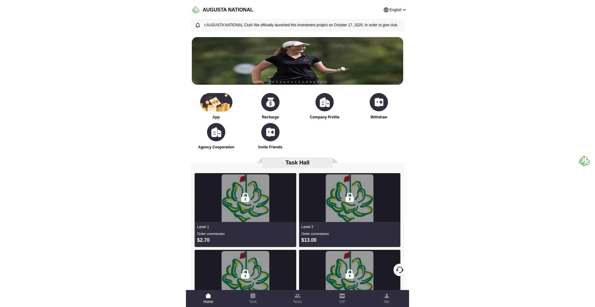 Anwagolf.app opera una plataforma financiera fraudulenta promoviendo oportunidades de inversión engañosas con promesas de retornos irreales. El análisis de seguridad indica que la plataforma emplea tácticas consistentes con esquemas Ponzi y fraude de tarifa anticipada diseñados para extraer fondos de usuarios e información personal.