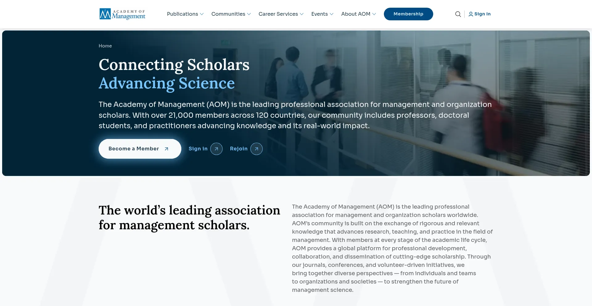The world’s leading association for management scholars. AOM's global community is nearly 20,000 strong, spanning over 120 countries.