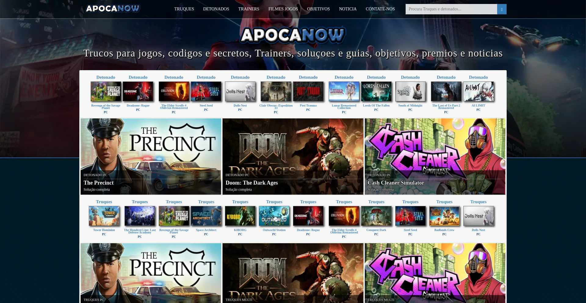 󾠊 Trucos jogos, codigos e secretos, trainers, detonados e guias, objetivos, premios e noticias para videogames - Apocanow.pt