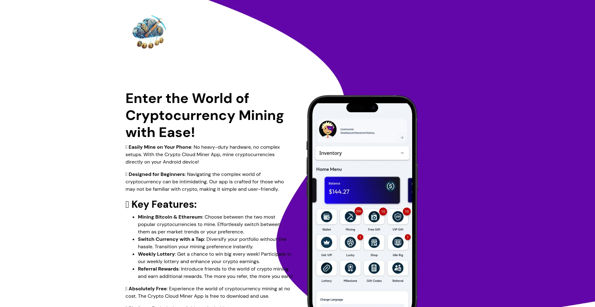 Crypto Cloud Miner App - Mine Bitcoin & Ethereum on Mobile