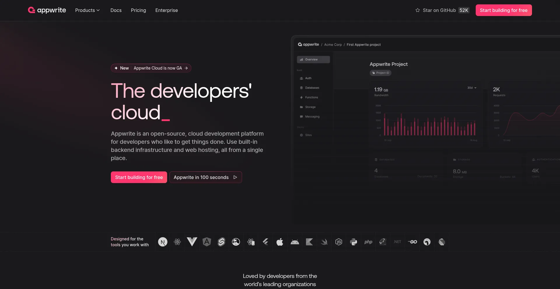 Appwrite is an open-source platform for building applications at any scale, using your preferred programming languages and tools.