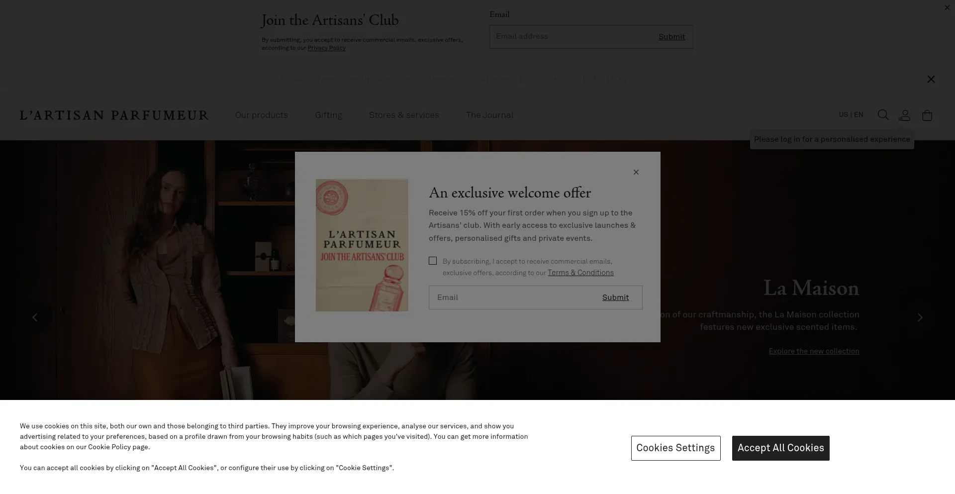 El sitio web implementa mecanismos de consentimiento de cookies en cumplimiento con regulaciones de privacidad como GDPR o CCPA. Esto demuestra que artisanparfumeur.com adhiere a estándares de protección de datos y proporciona a los usuarios control sobre prácticas de recolección de datos personales.