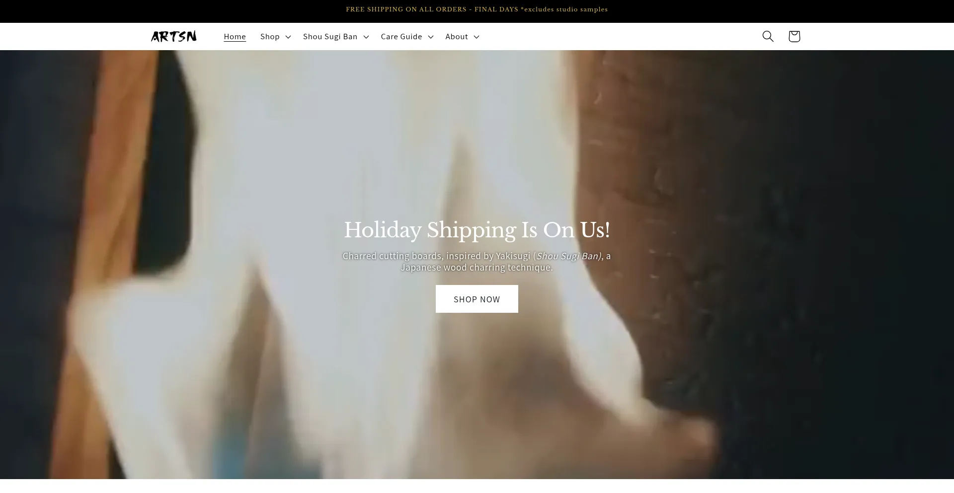 Discover the art of Yakisugi (Shou Sugi Ban). ARTSN creates premium, handmade charred wood cutting boards that are as beautiful as they are functional. Shop our collection.
