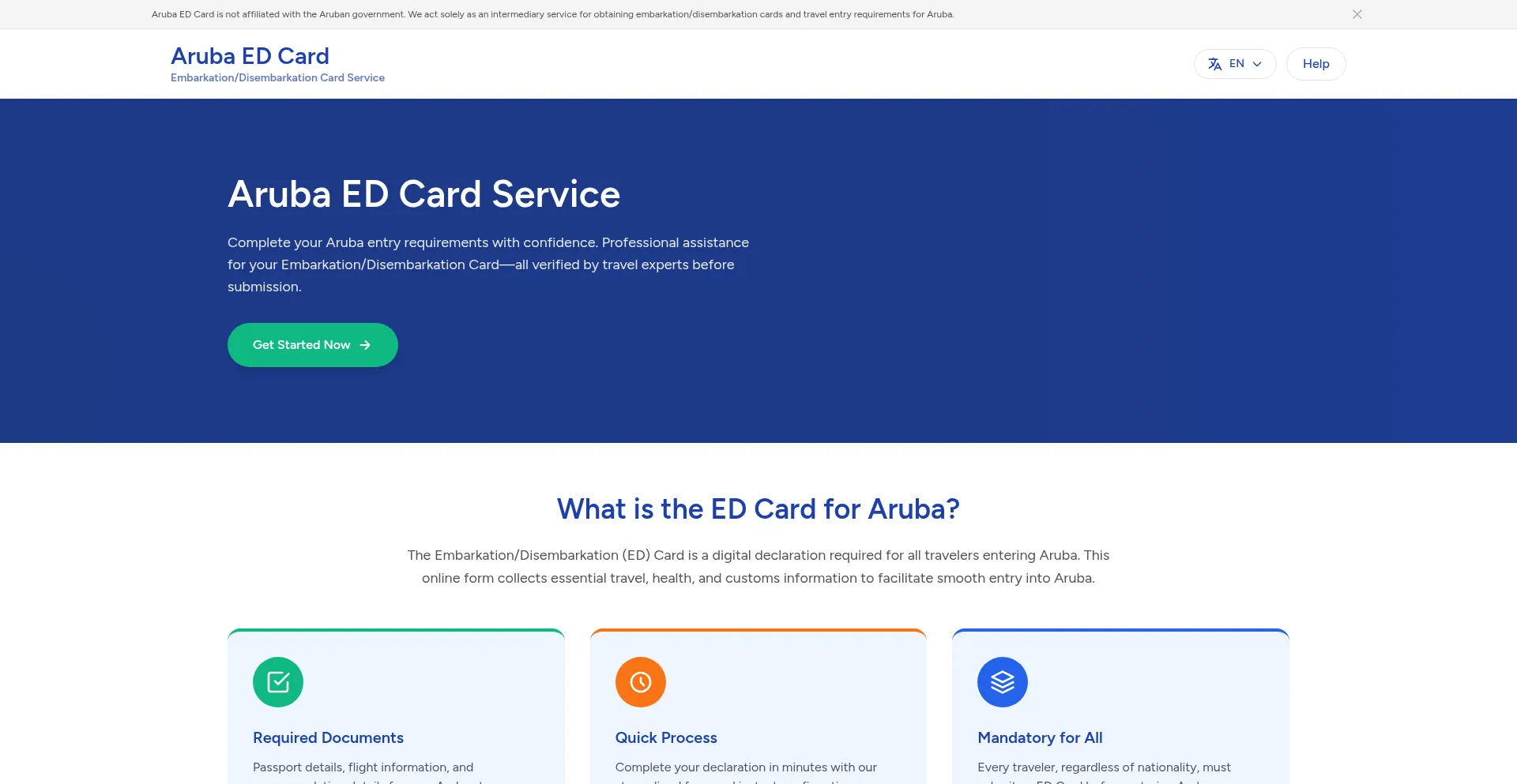 Aruba ED Card is not affiliated with the Aruban government.