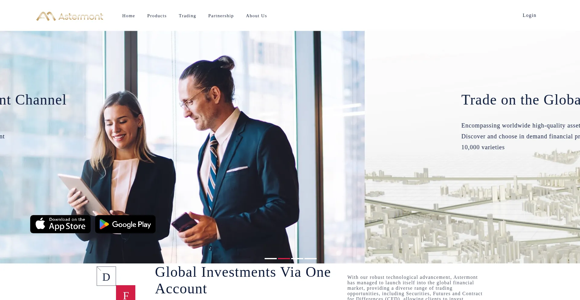 Astermont, a subsidiary of Astermont is an online broker that offers global brokerage services in trading securities, futures, CFD, and many other financial instruments to profe...