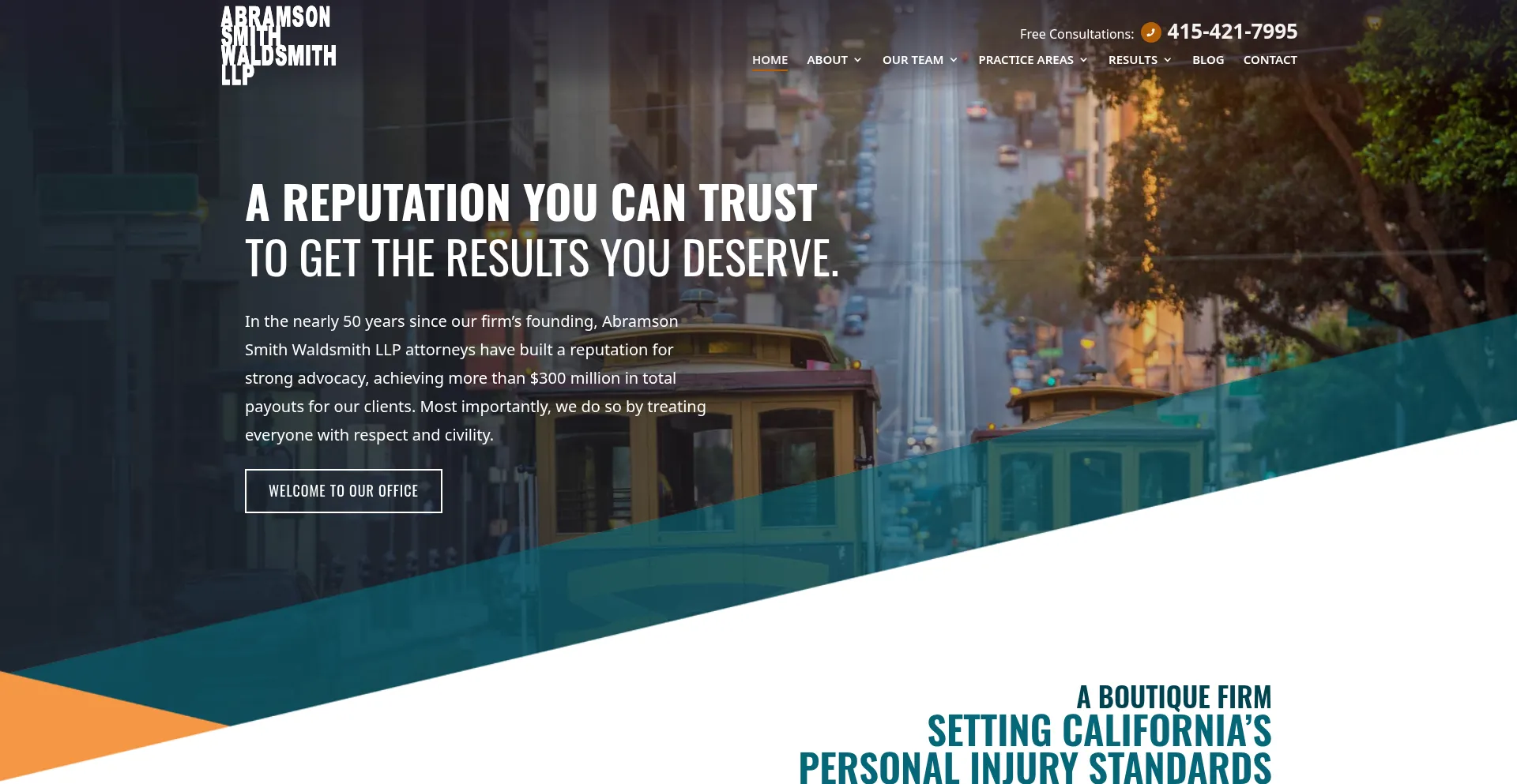 Abramson Smith Waldsmith, LLP, is a leading personal injury law firm with decades of experience and a track record of success. Call our office in San Francisco at 415-421-7995.