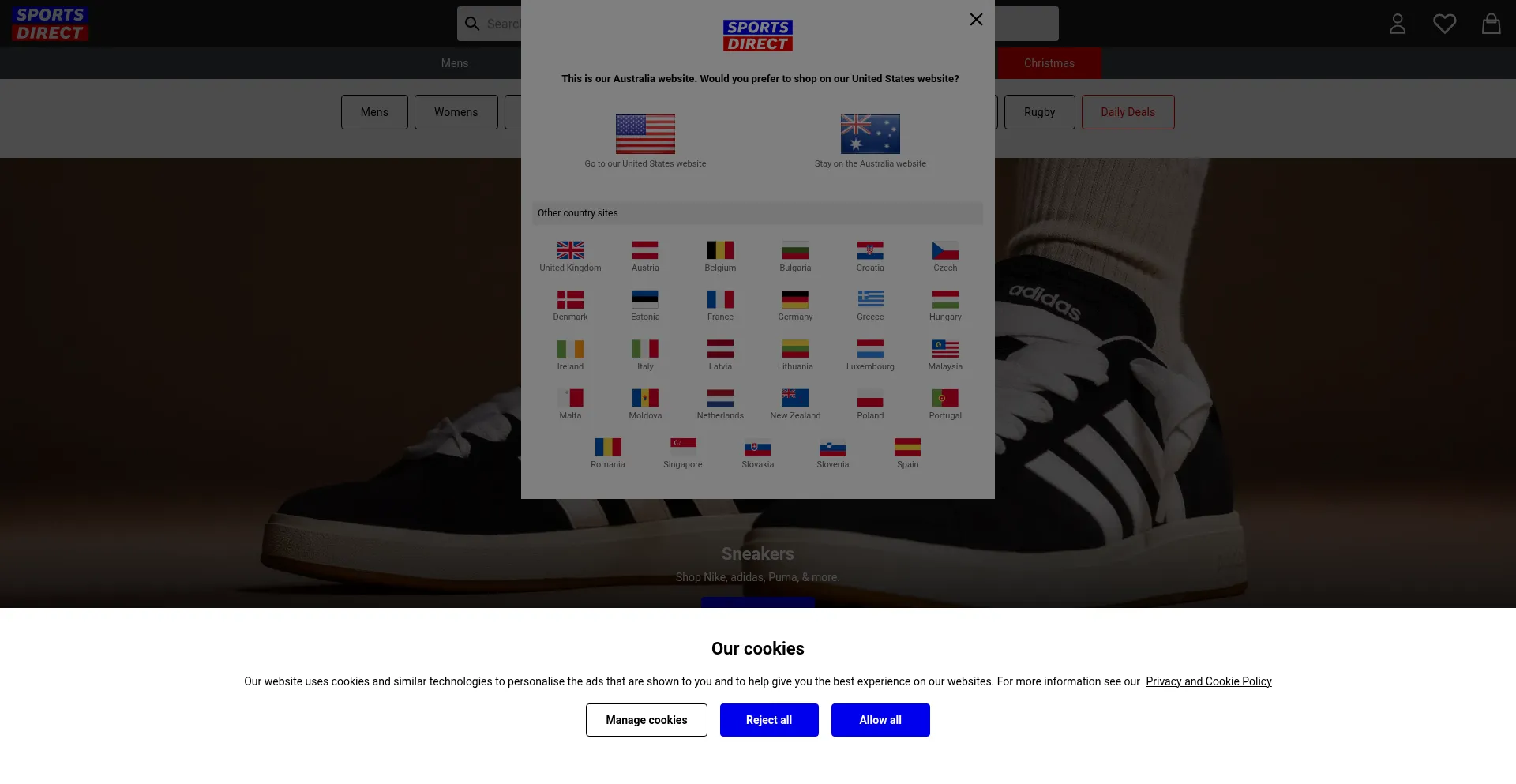 El sitio web implementa mecanismos de consentimiento de cookies en cumplimiento con regulaciones de privacidad como GDPR o CCPA. Esto demuestra que au.sportsdirect.com adhiere a estándares de protección de datos y proporciona a los usuarios control sobre prácticas de recolección de datos personales.