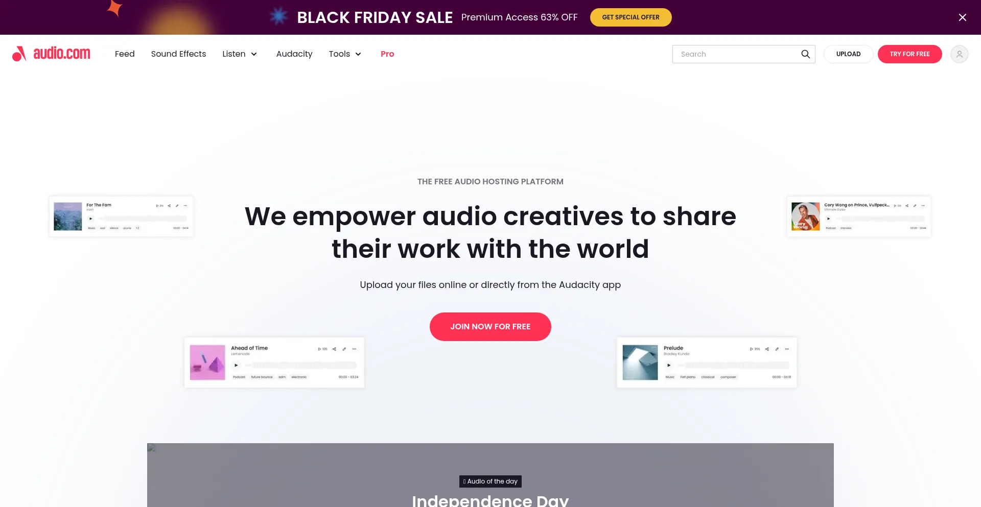 audio.com is a free audio-sharing platform designed to empower audio creatives and musicians