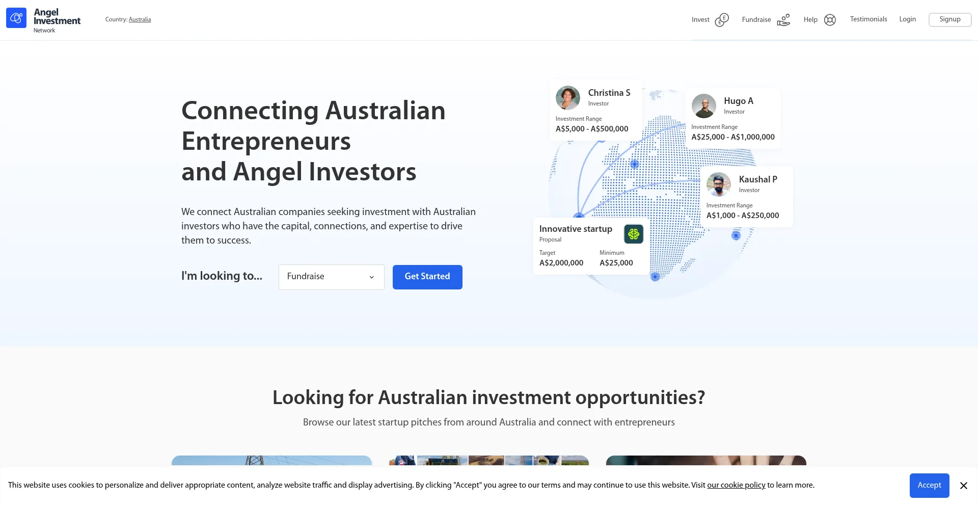 The Australia Angel Investment Network connects business entrepreneurs with Angel Investors. Find an Investor for your business, or access a network of investment opportunities.