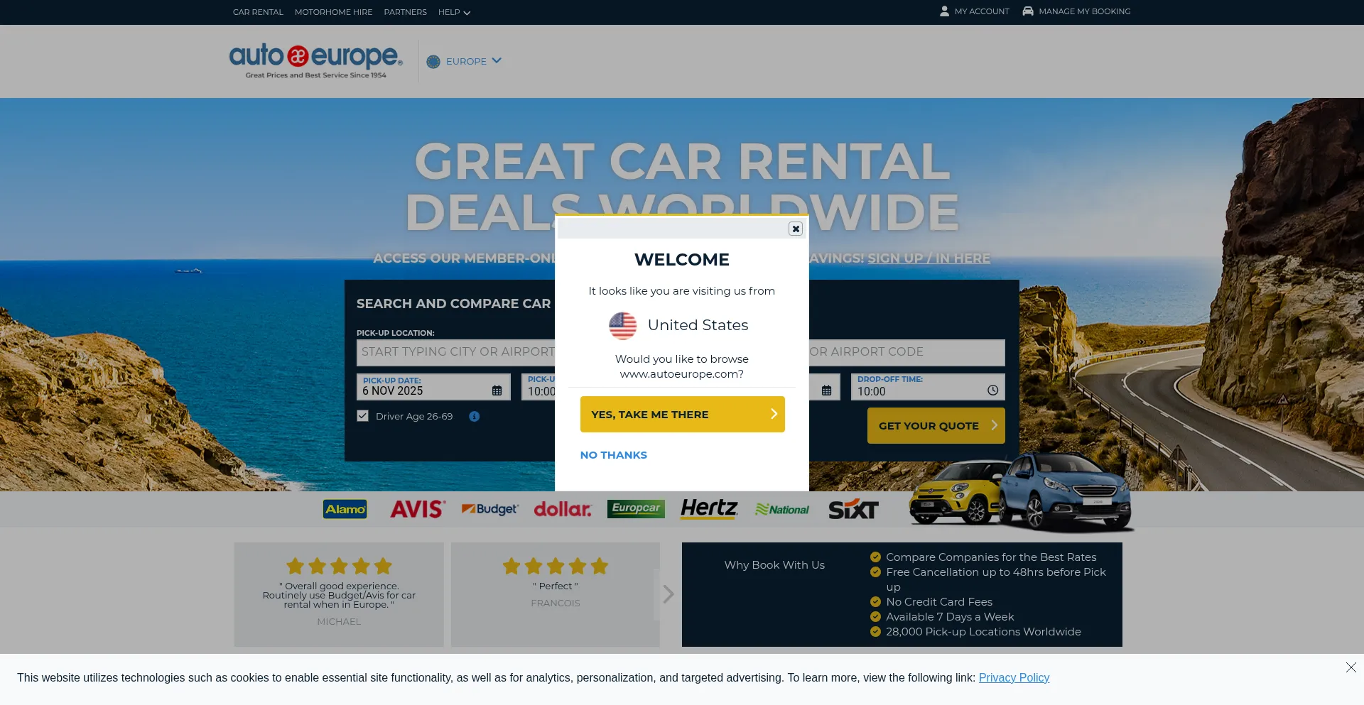 Cheap car rental comparison - Book now & save | Auto Europe