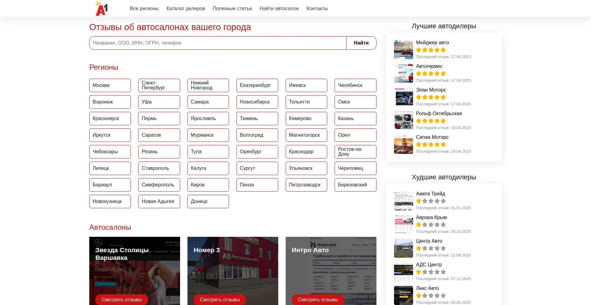 Каталог автосалонов России - отзывы об автодилерах, рейтинг и мнения автолюбителей. Оставить отз...