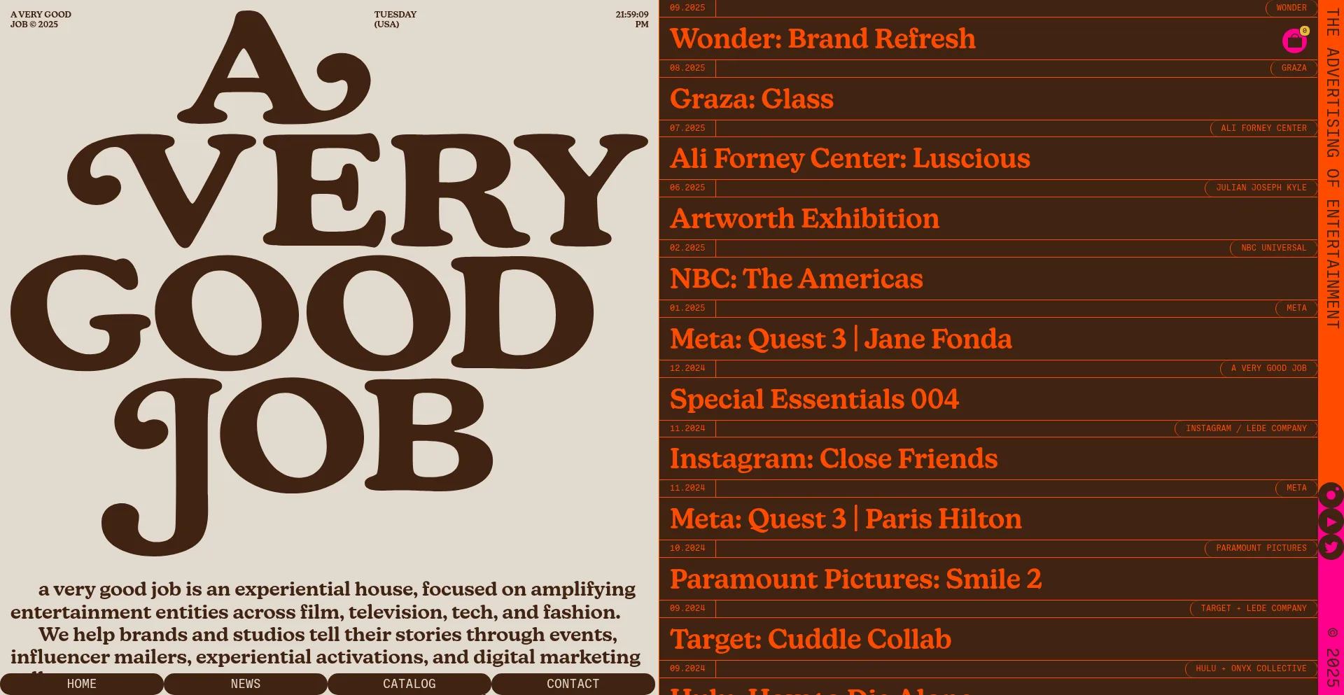 A VERY GOOD JOB is an event production and content house, focused on amplifying entertainment entities across film, television, music, and fashion.