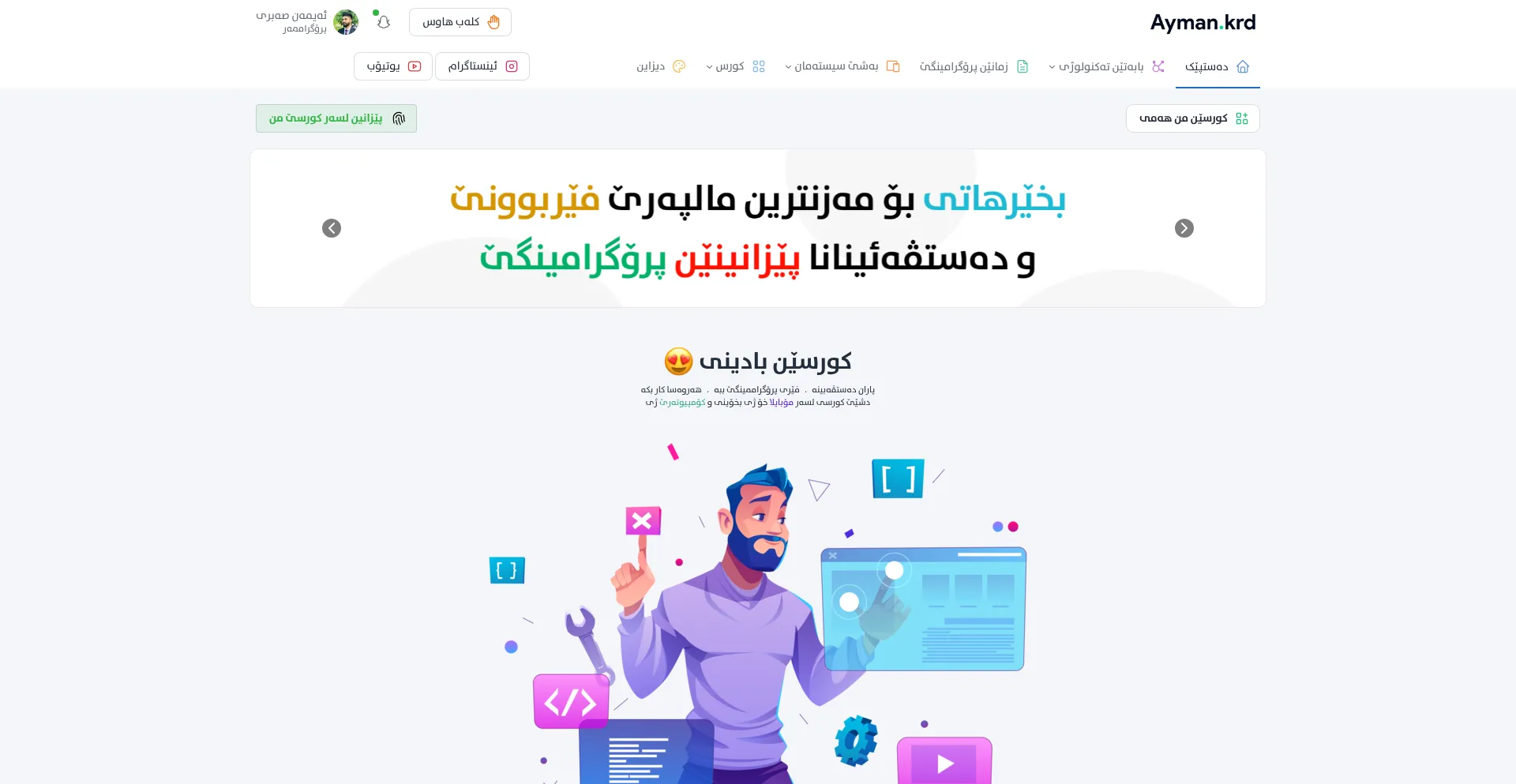 La presencia de enlaces de redes sociales en el sitio web indica que ayman.krd mantiene cuentas oficiales en redes sociales, lo que es un indicador positivo de credibilidad y compromiso.