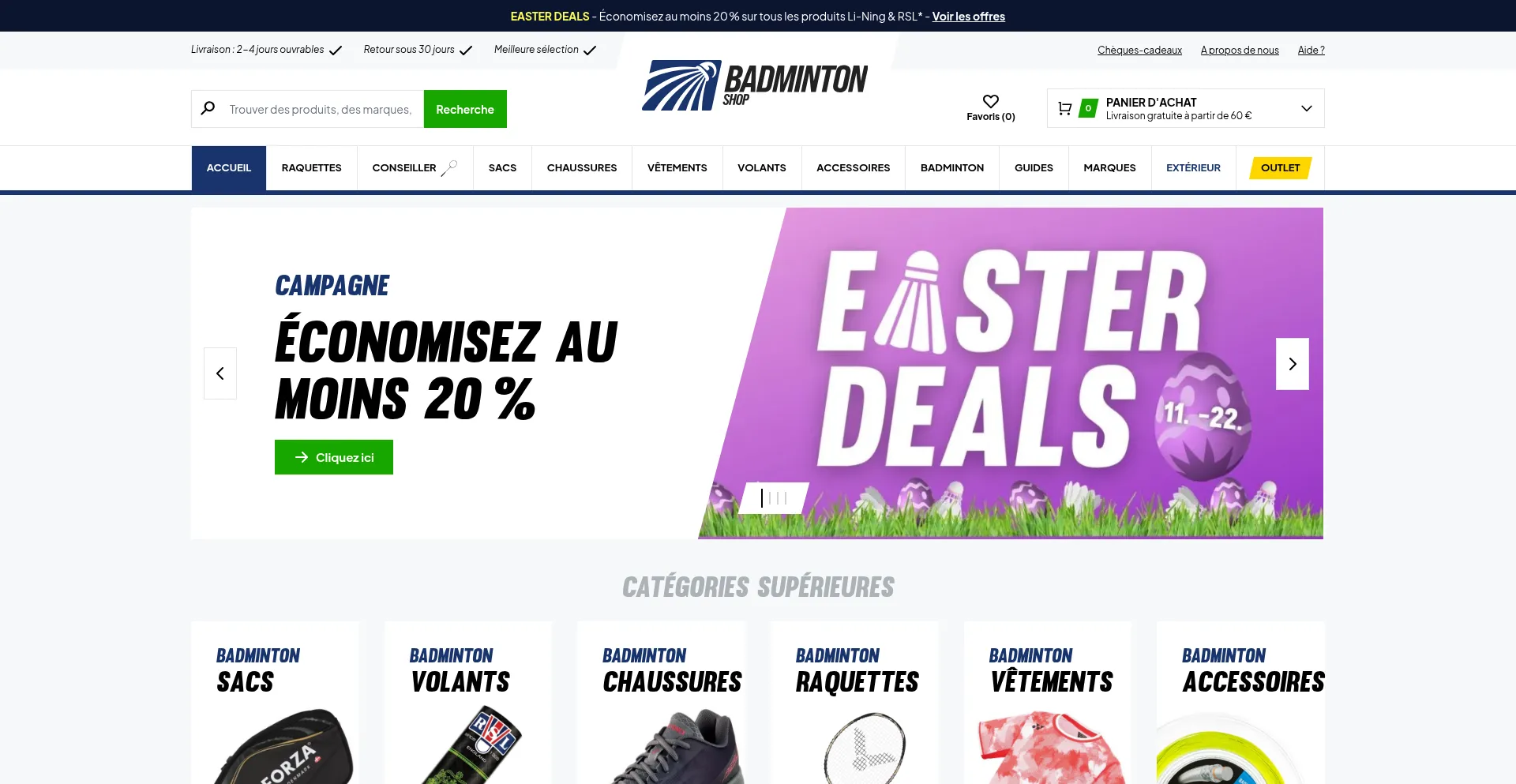 Badminton-shop propose tout ce dont vous avez besoin pour le badminton, avec des prix compétitifs sur les raquettes, les chaussures, les volants et bien plus encore