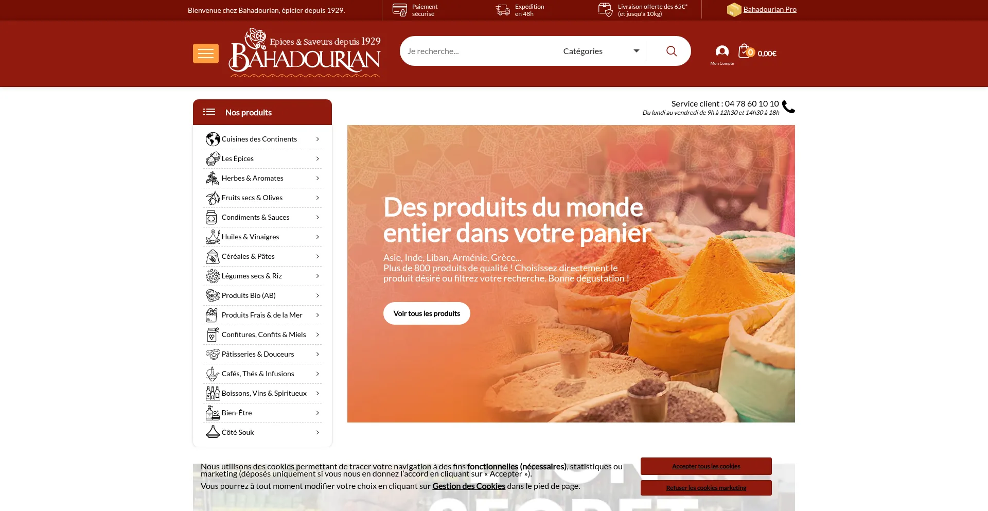 Boutique en ligne de Bahadourian, épicier depuis 1929. Découvrez tous les rayons de produits du monde de la boutique Bahadourian : épices, condiments, produits frais, c...