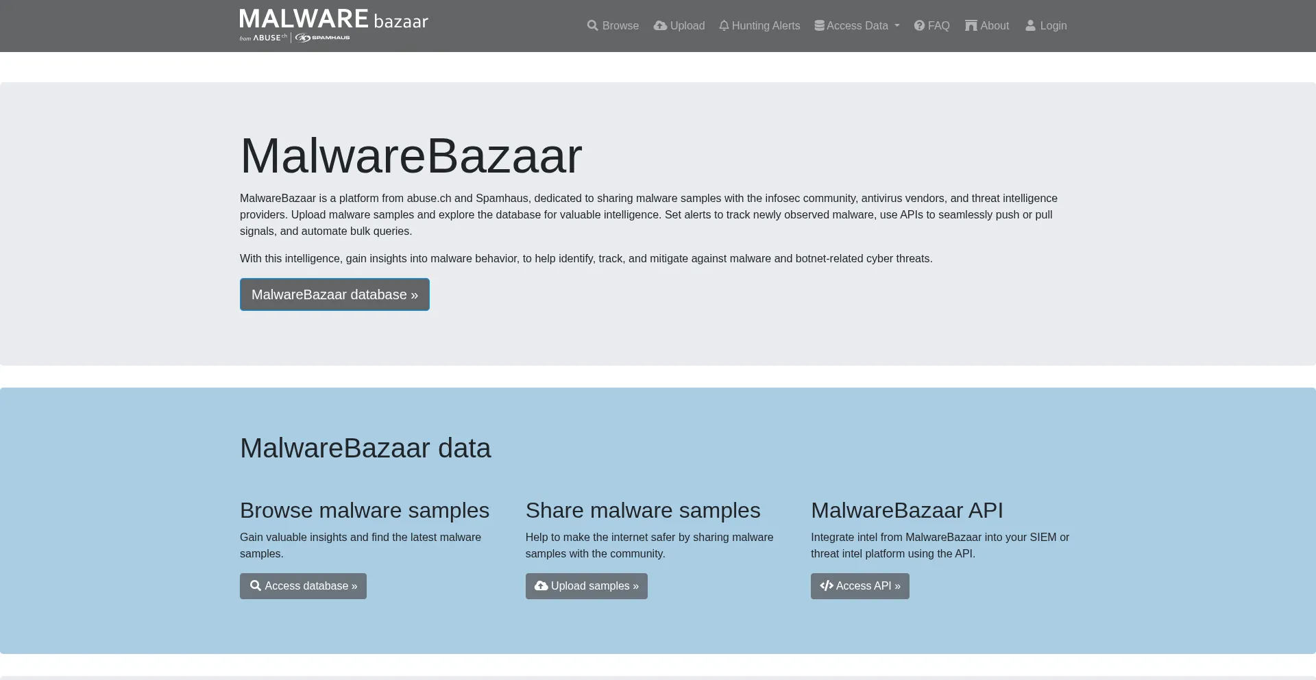 MalwareBazaar is a project of abuse.ch with the goal of sharing malware samples