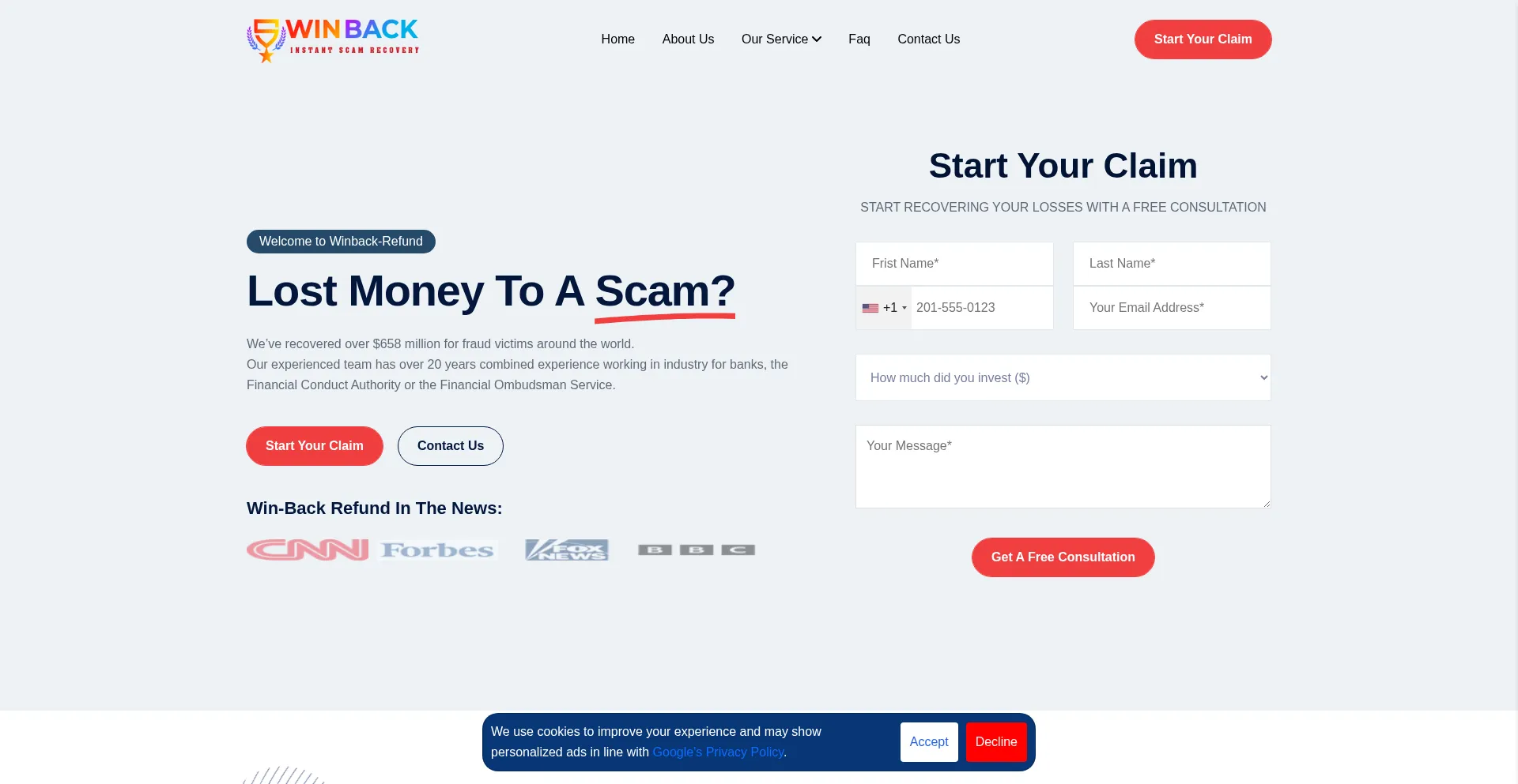 Winback-Refund Service is experienced in dealing with: Crypto scams; impersonation scams; investment scams; romance scams; advance fee scams; invoice scams and corporate scams. ...
