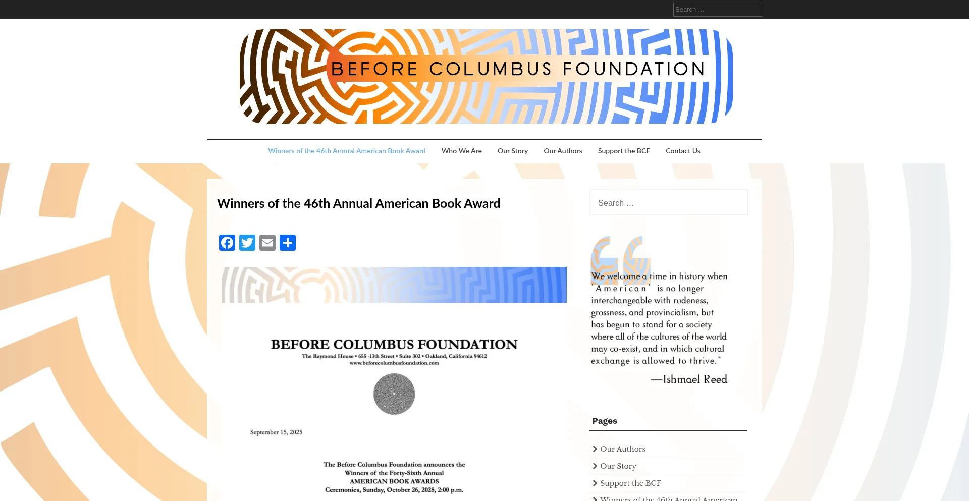 Before Columbus Foundation – Nonprofit educational and service organization dedicated to the promotion and dissemination of contemporary American multicultural literature since 1976. Host of the annual American Book Awards.