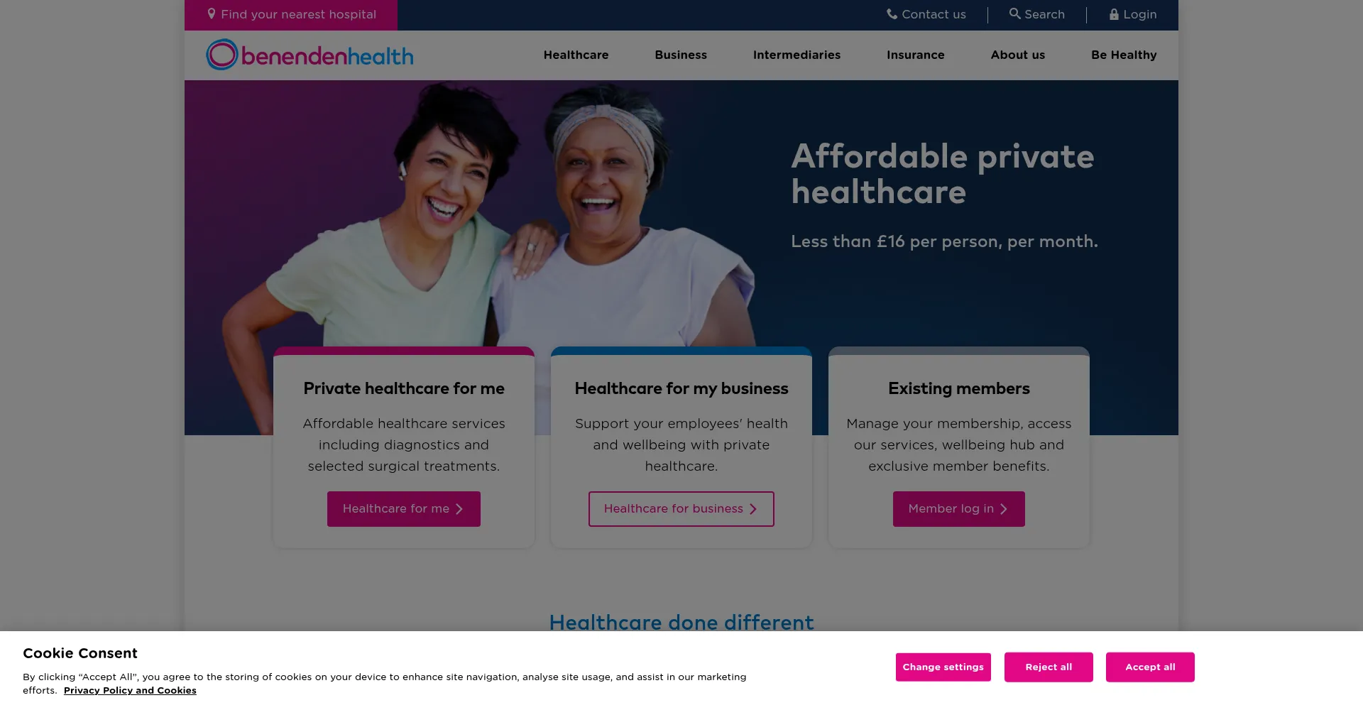 Affordable private healthcare. GP helpline, diagnostics, approved surgical treatments and a much more. All for less than £16 per person, per month.