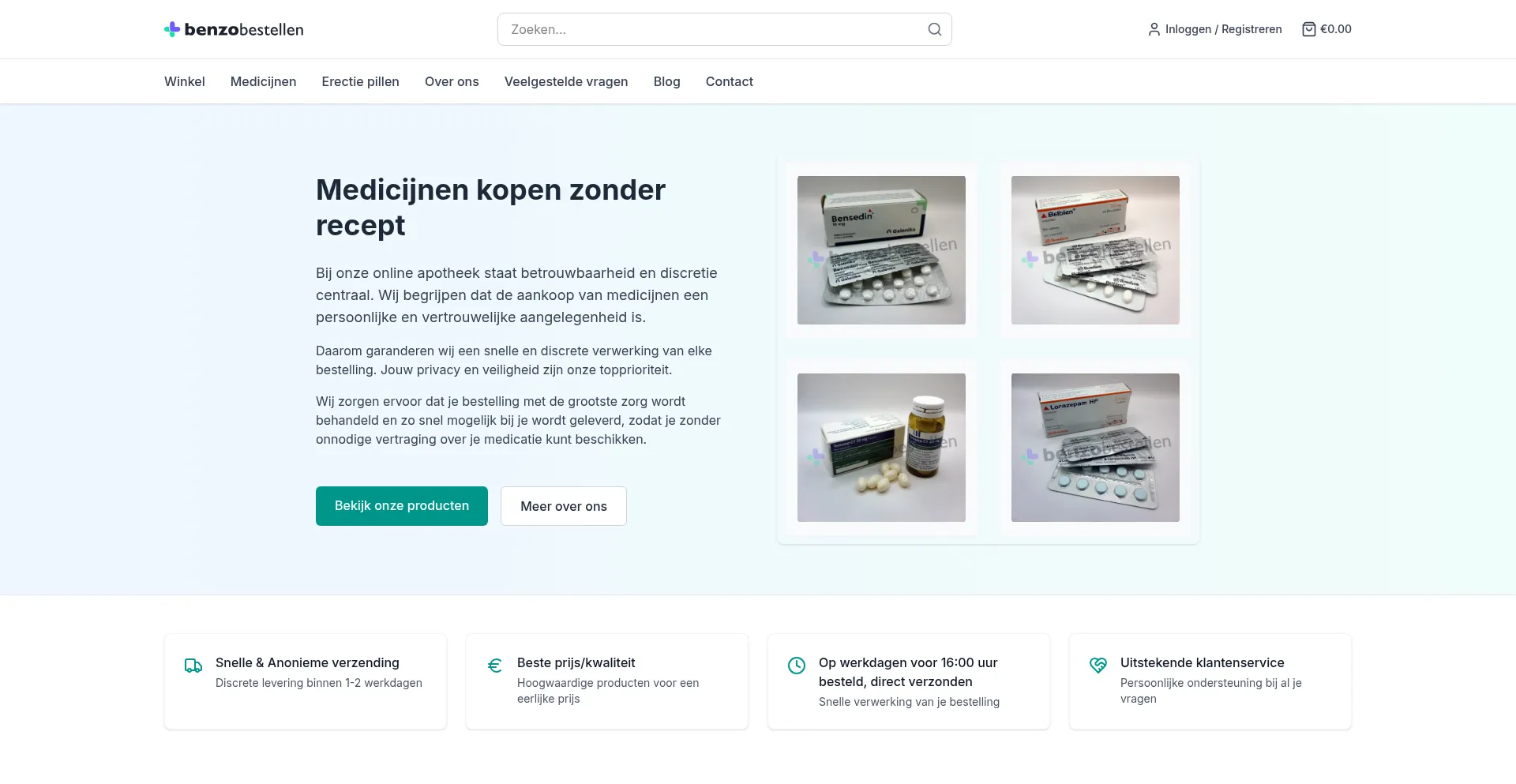 Bestel veilig en eenvoudig benzodiazepinen zoals Zolpidem, Xanax, Diazepam en Lorazepam zonder recept. Snelle levering met iDeal of Bancontact via benzobestellen.com